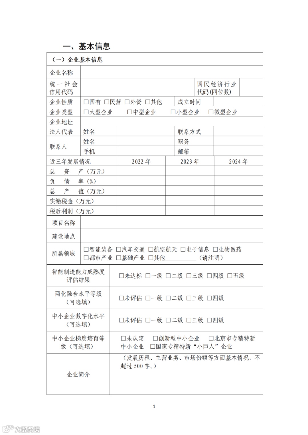 附件:1.2025年北京市先进级智能工厂认定申请书