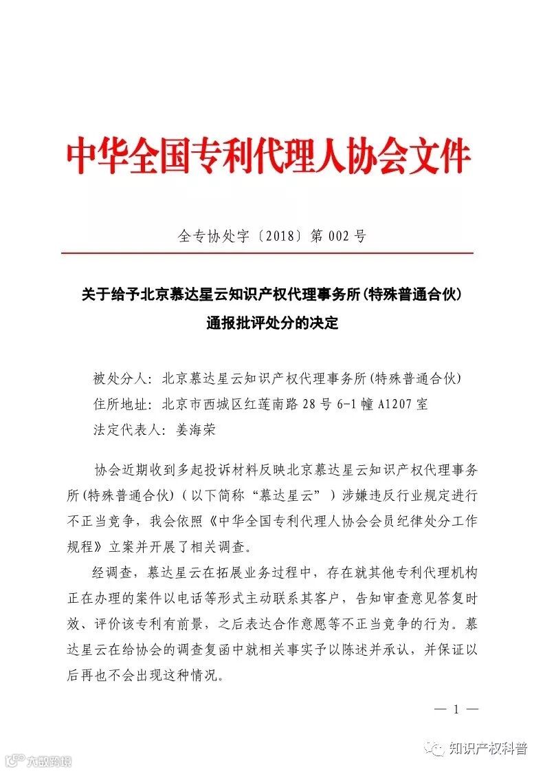 专利代理领域怎么了?|全国专代协会近期发布了五份通报批评处分决定
