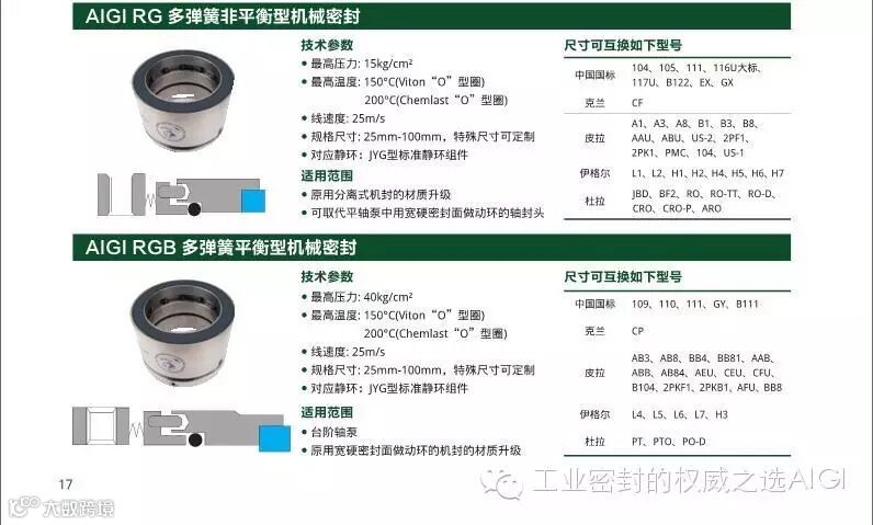 可参照以上的数据选择适合的机封类型。