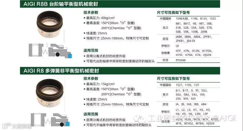 艾志单端面REPLACER机械密封系列