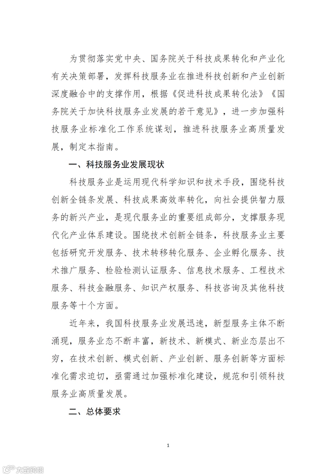 附件:1.《科技服务业标准体系建设指南》(征求意见稿)