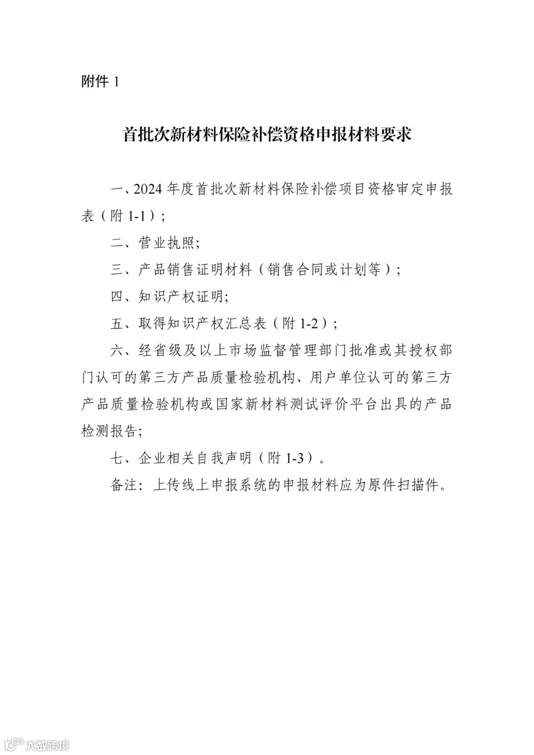 附件:1.首批次新材料保险补偿资格申报材料要求