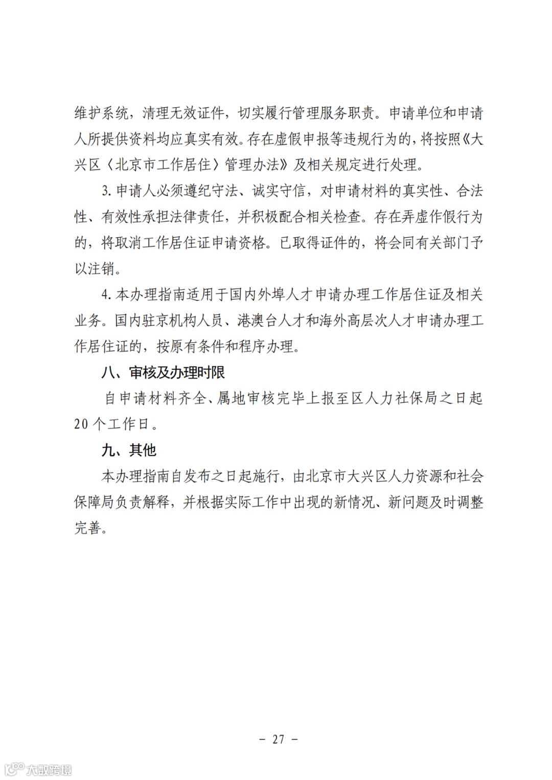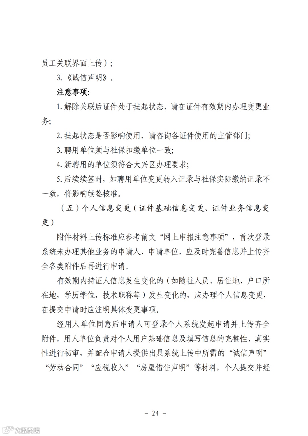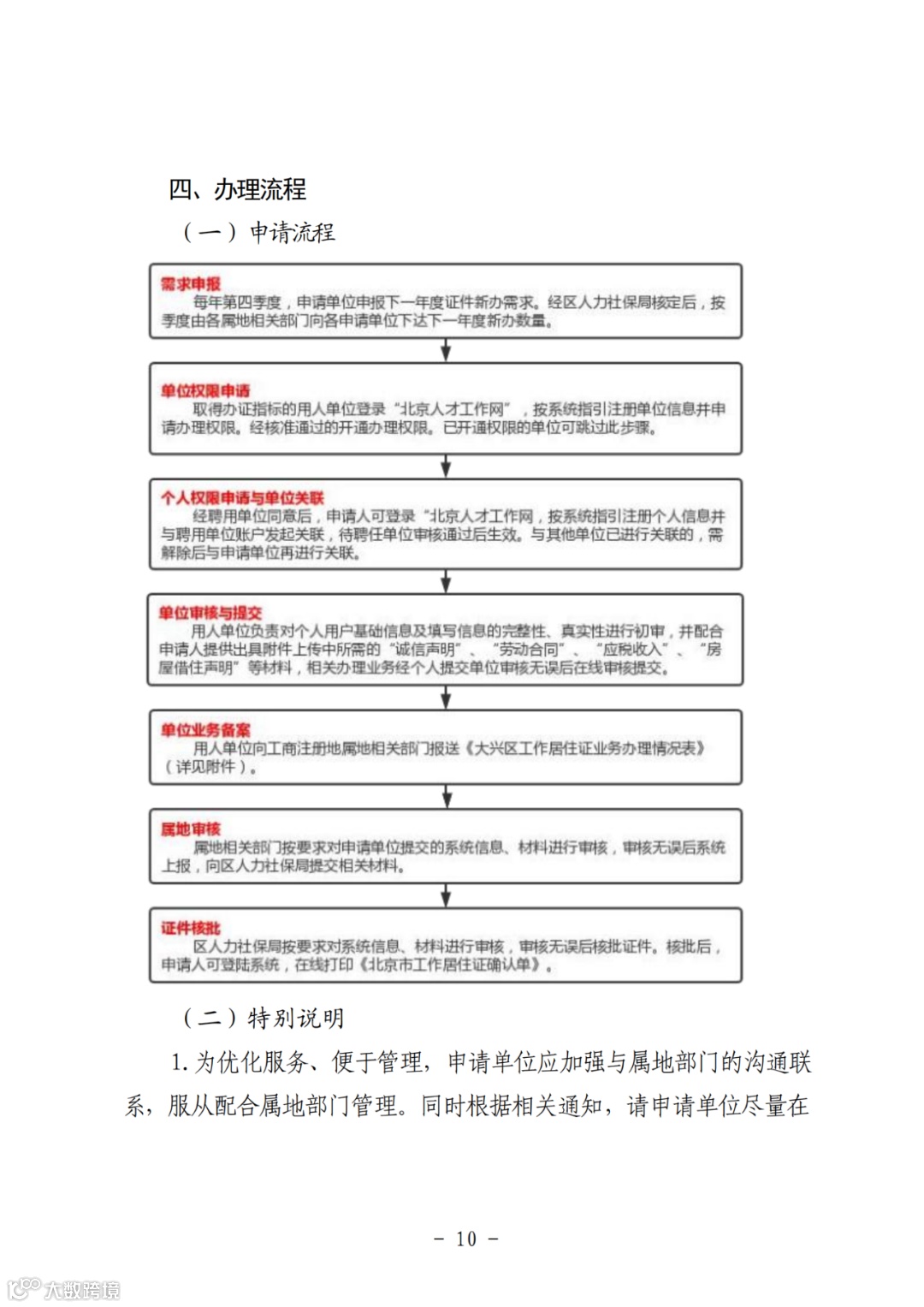 2.大兴区人力资源和社会保障局根据市、区相关规定,结合申报单位的经济社会贡献、科技研发、人员规模、劳动关系、2024年全年办理指标使用等情况确定2025年第一季度办理指标。其中,对于2024年已发放办理指标但未使用完全的用人单位,将结合情况给予2025年第一季度办理指标减发、停发等处理。未获批指标的用人单位无法办理工作居住证新办业务。2025年第一季度新办指标分配结果将通过属地部门反馈申报单位,具体安排另行通知。