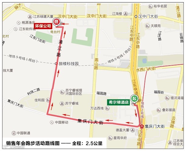● 路线:河西万达希尔顿酒店大厅外广场------艾志集团河西总部