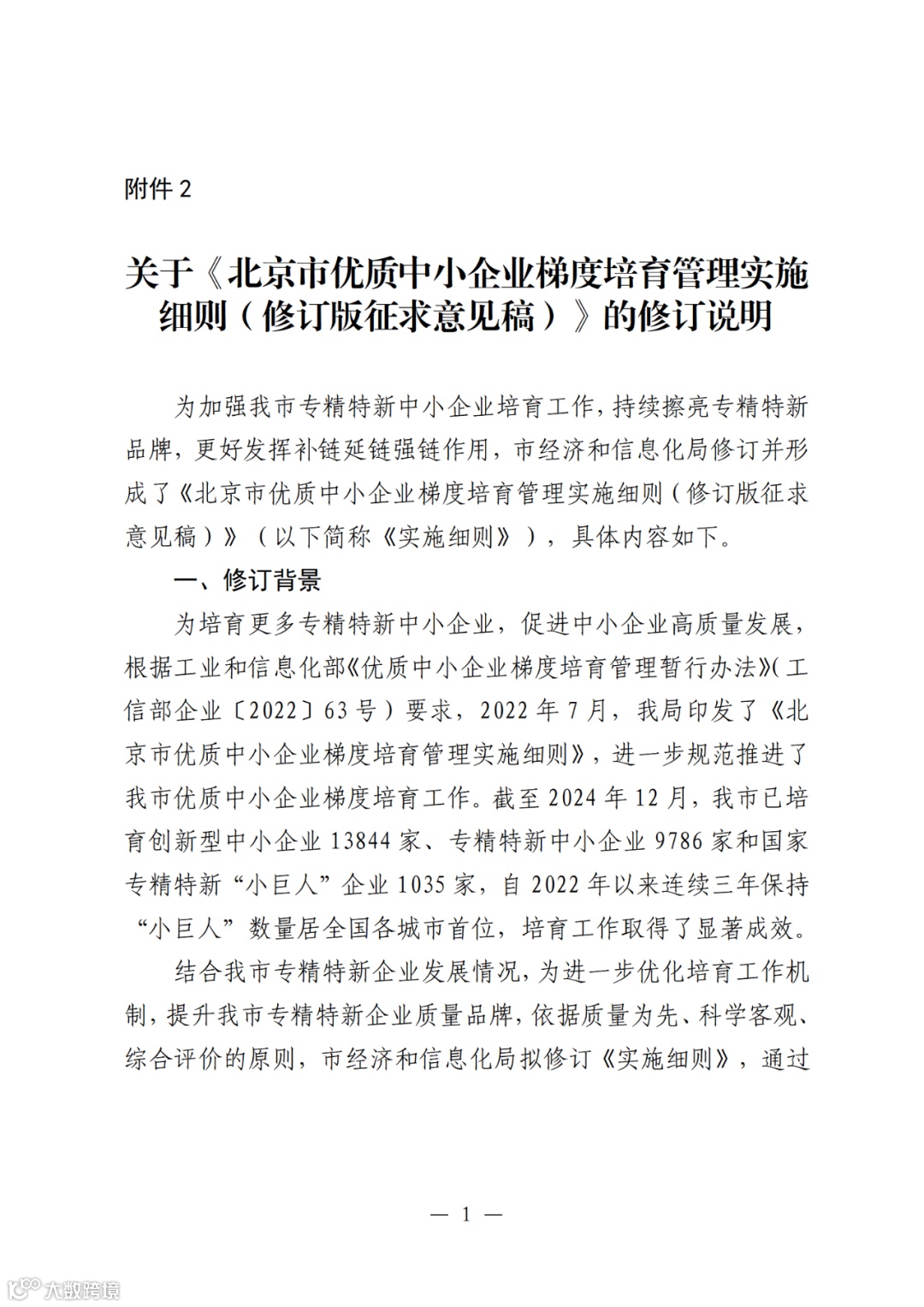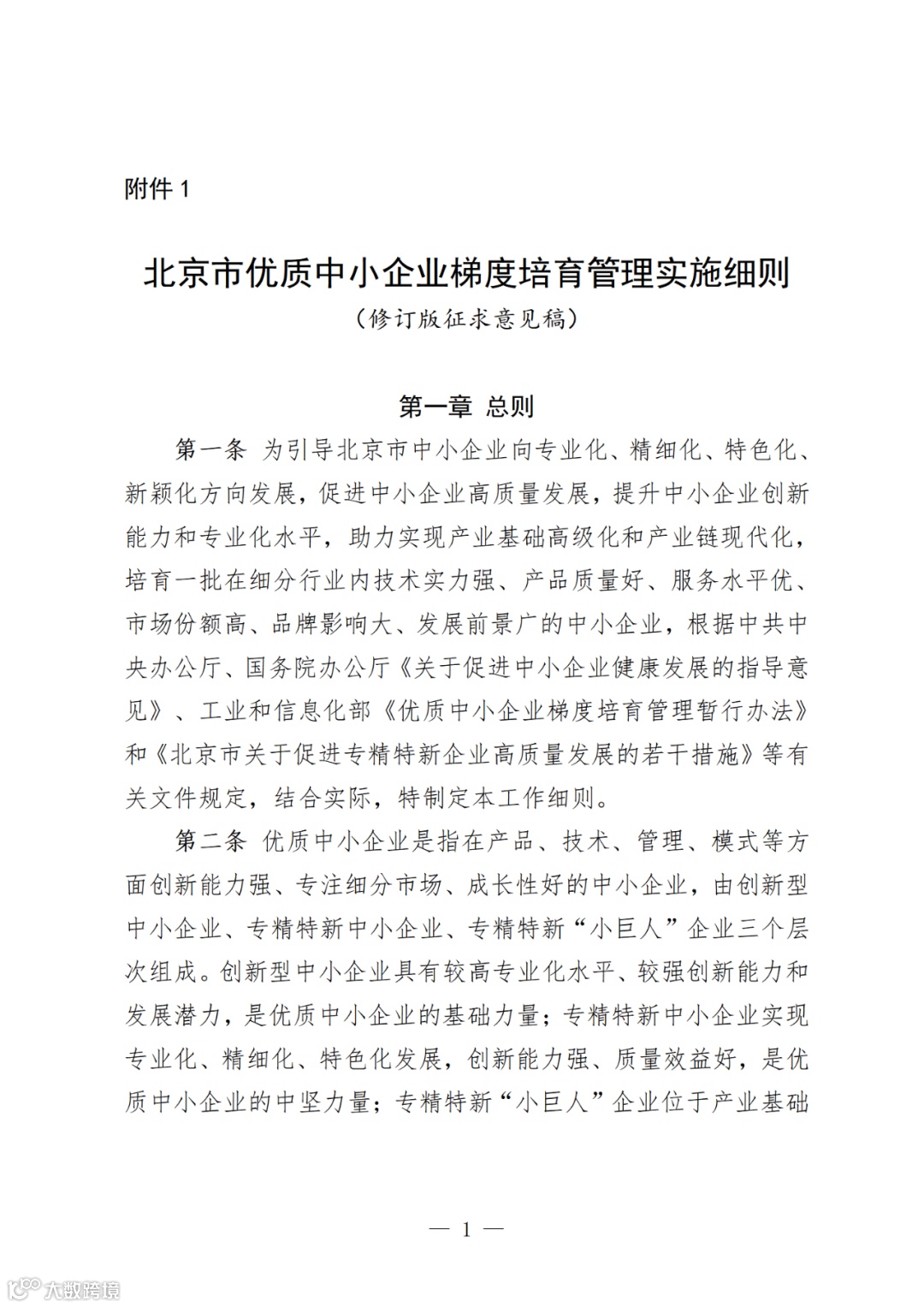 附件:1.北京市优质中小企业梯度培育管理实施细则(修订版征求意见稿)