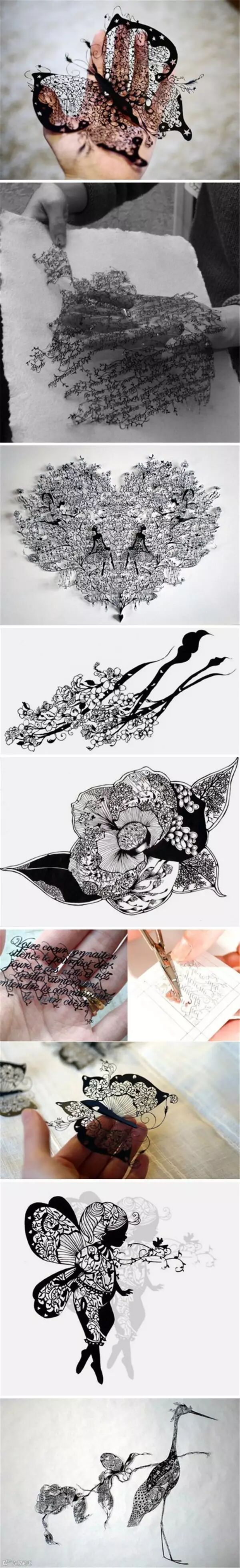 来自巴黎的日本艺术家Hina Aoyama,被评选为影响世界的一百名日本人之一,据说只要给她一把剪刀和一张纸,她就能剪出细若游丝,令人赞叹不已的作品。