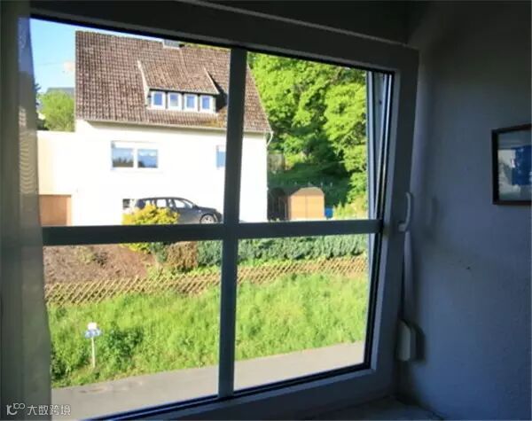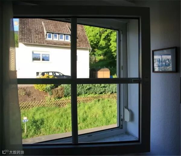 ⑵德国的窗户有两种打开方式,一种是常规的横向内拉全开,一种是纵向小角度内倾,后者相当于在窗户上端开了个大缝,既透气又不会漏雨。第一次去德国时不知道,在酒店一拉窗框向内倒下来还以为坏了,找服务员投诉,闹了个笑话。这种窗户是一百多年前发明的。