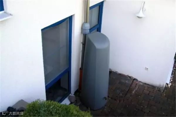 ⑷有些德国房子外墙竖有一人高的金属箱,形状有点象古埃及装木乃伊的棺材,顶端与房顶排水管相连。问了才知道是雨水收集器,能装30升的雨水,收集的雨水会用于浇花浇草坪。德国多雨,需要人工浇灌的时候不太多,用自来水浇灌的成本其实并不高。