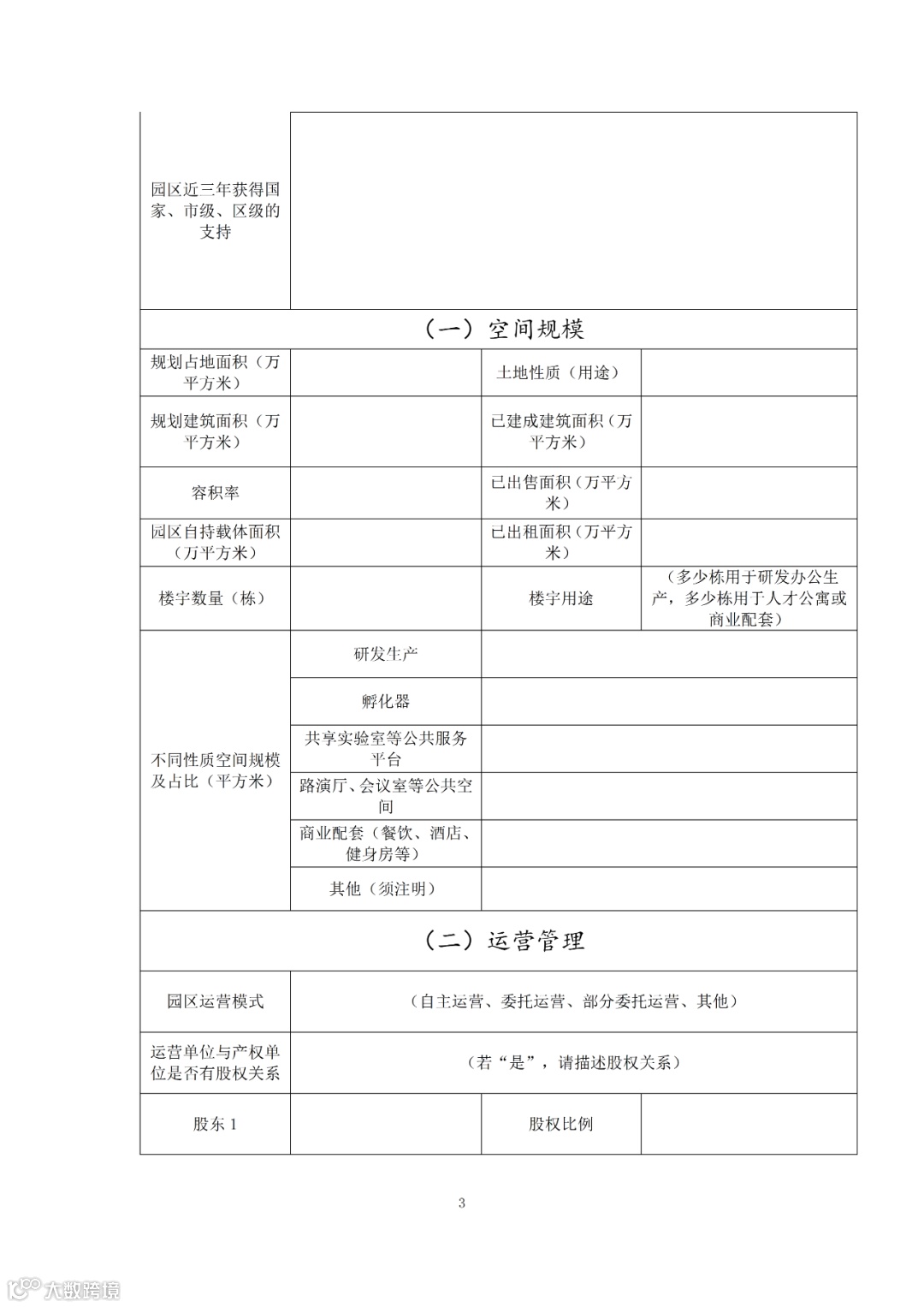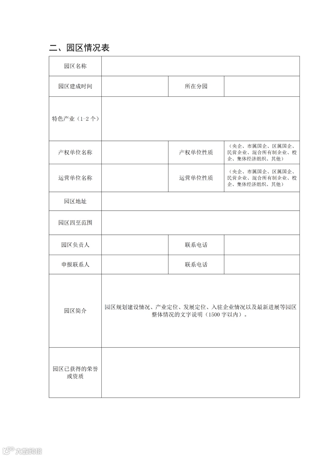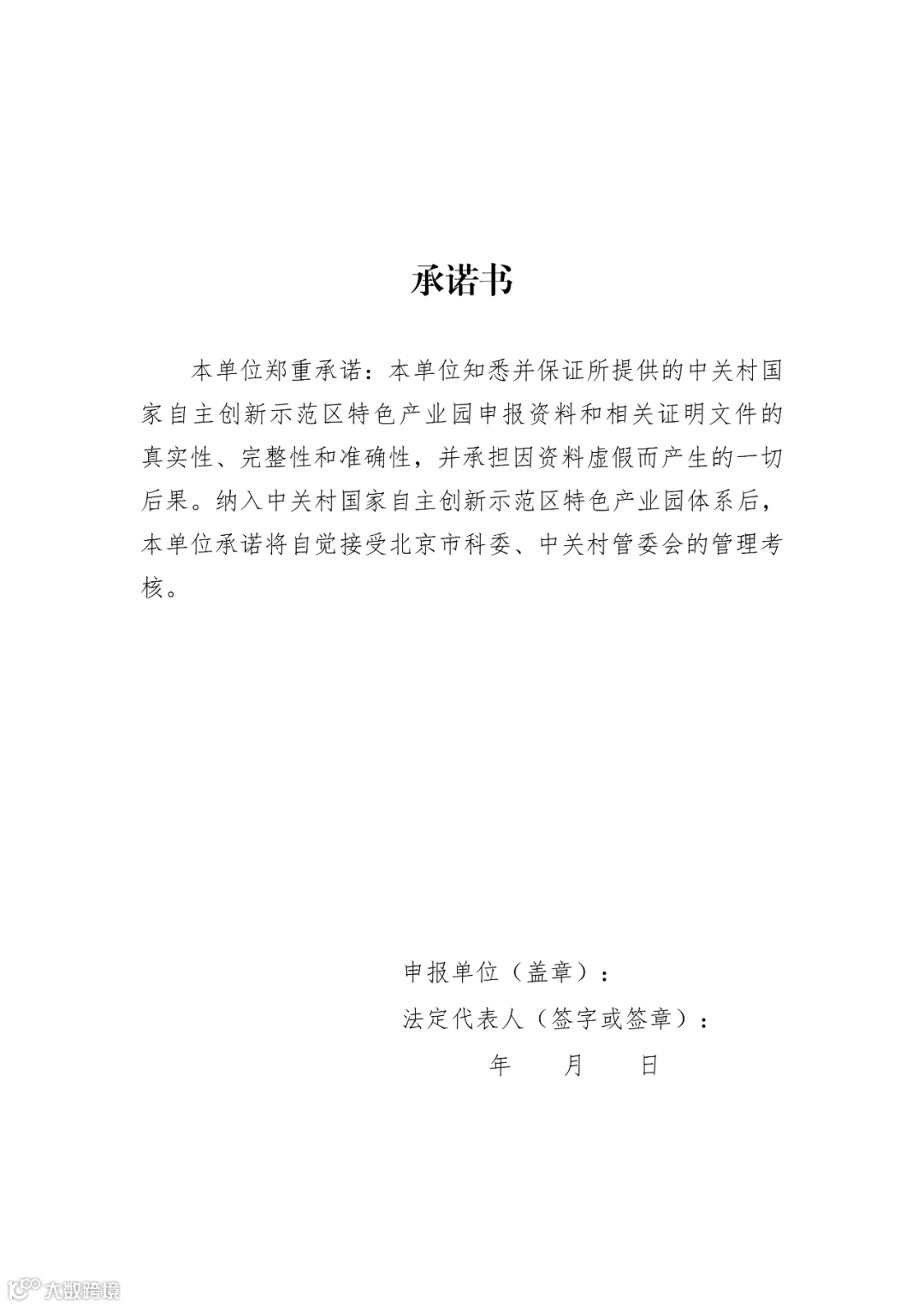 (一)《中关村国家自主创新示范区特色产业园申报书》(以下简称“申报书”)。