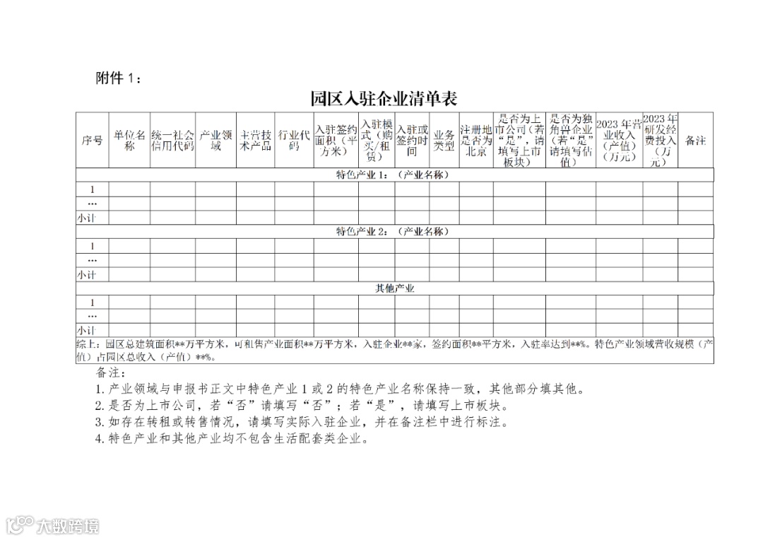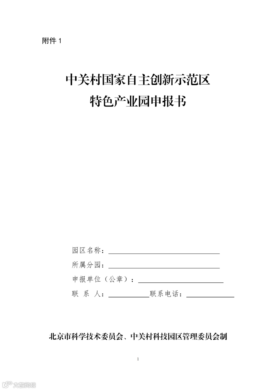 附件:1.《中关村国家自主创新示范区特色产业园申报书》