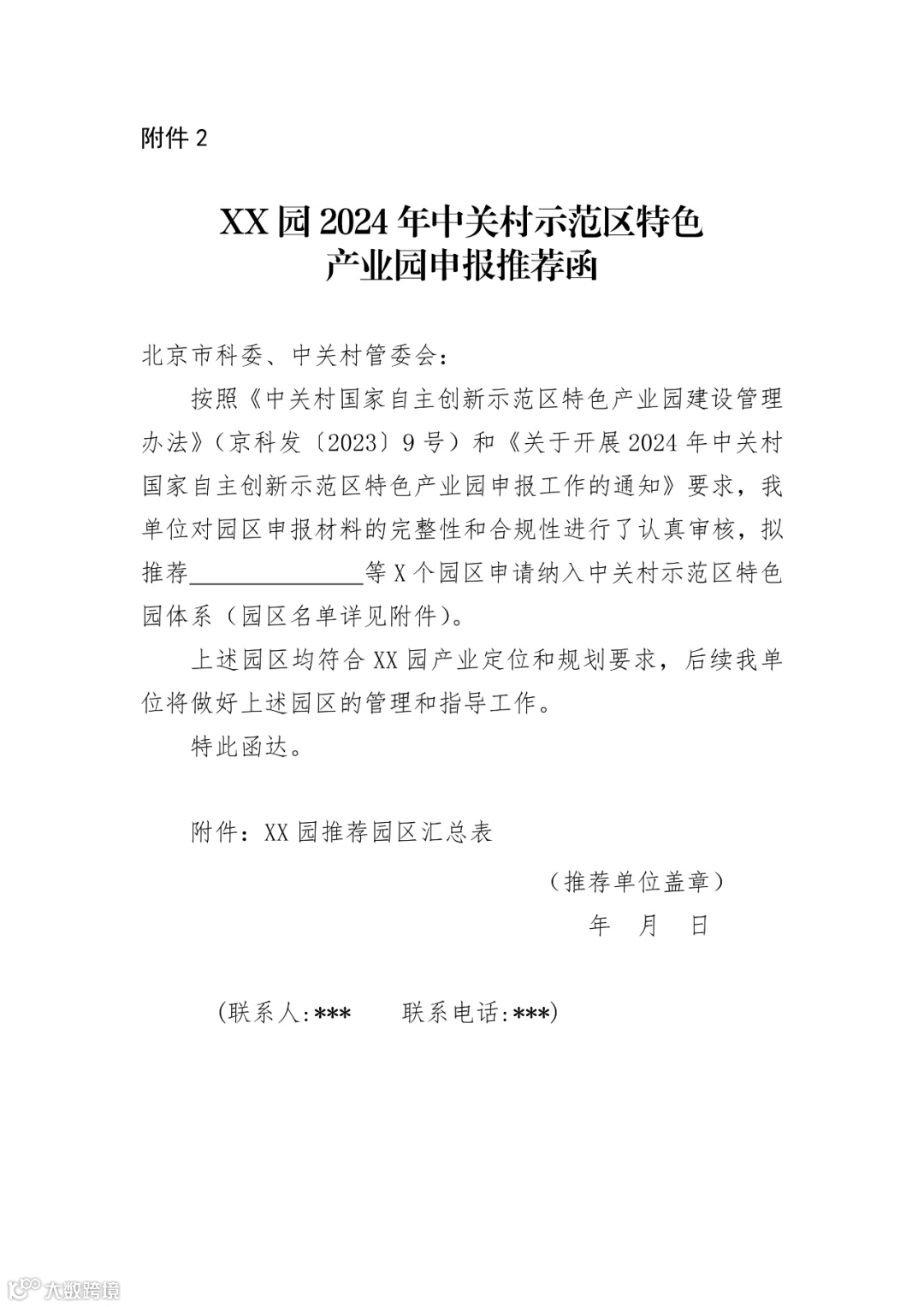 (二)各分园管理机构对申报材料进行审核,并出具加盖公章的推荐函(附件2),于2024年9月6日前以分园为单位向市科委、中关村管委会报送分园推荐函和项目申报材料,纸质版送至海淀区阜成路73号裕惠大厦C座812,电子版材料发送至