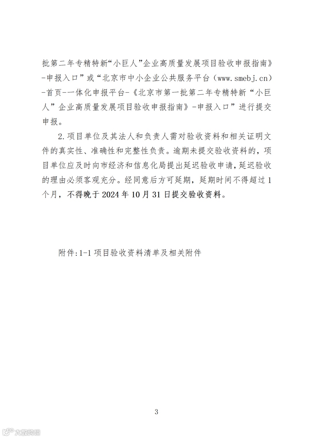 北京市经济和信息化局关于开展北京市第一批第二年专精特新“小巨人”企业高质量发展项目验收工作的通知