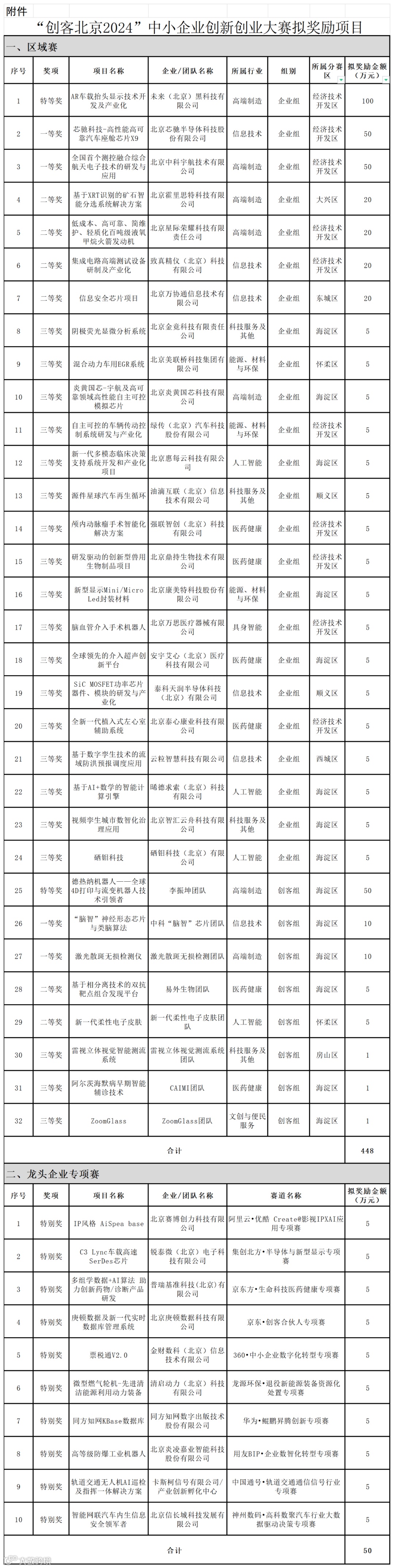 关于“创客北京2024”创新创业大赛拟奖励获奖项目的公示