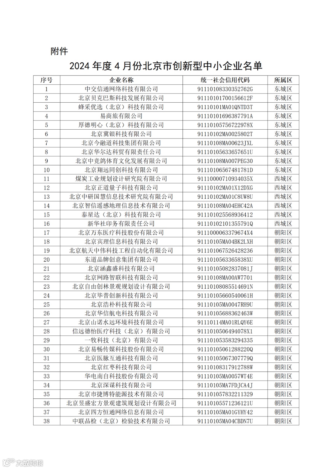附件:2024年度4月份北京市创新型中小企业名单