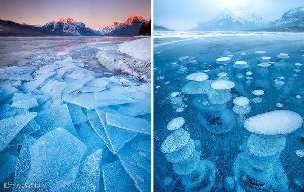 冰湖,气泡都被冻住了