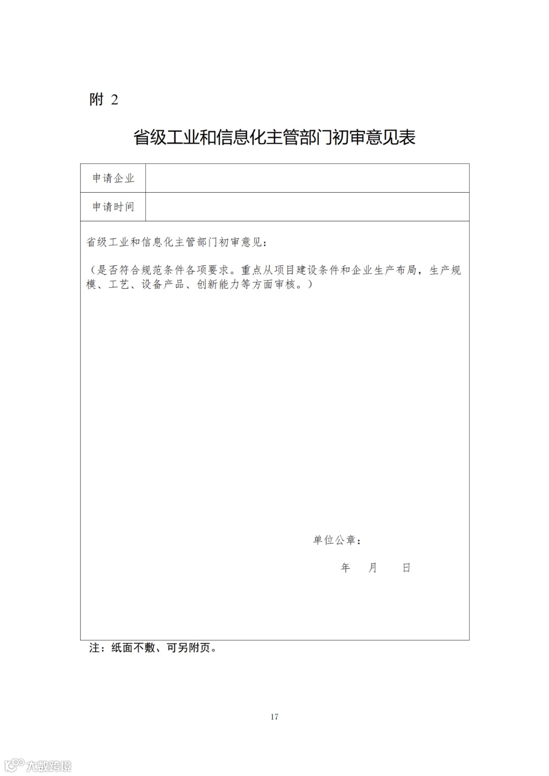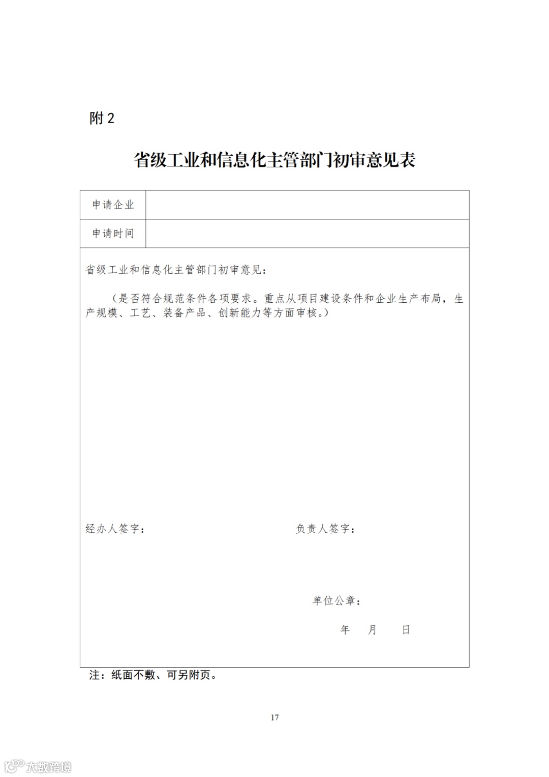 (https://green.miit.gov.cn)(以下简称平台)线上提交规范条件申请书等公告申请材料。