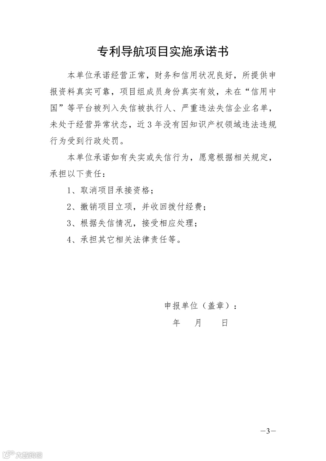 (三)签订合同。专利导航项目实行合同制管理,实施周期一般不超过一年。无正当理由未在规定时间内签订项目合同书的视为放弃资格。
