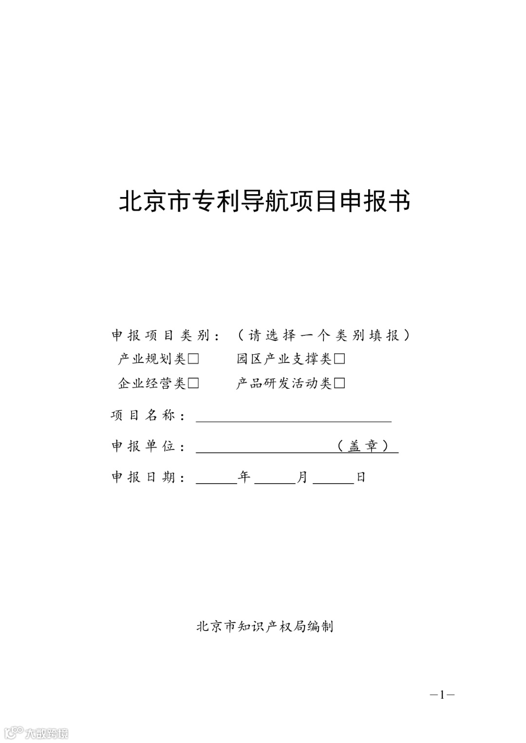北京市知识产权局关于组织申报2024年专利导航项目的通知