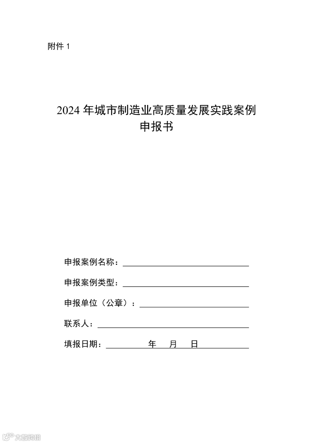 附件:1.2024年城市制造业高质量发展实践案例申报书