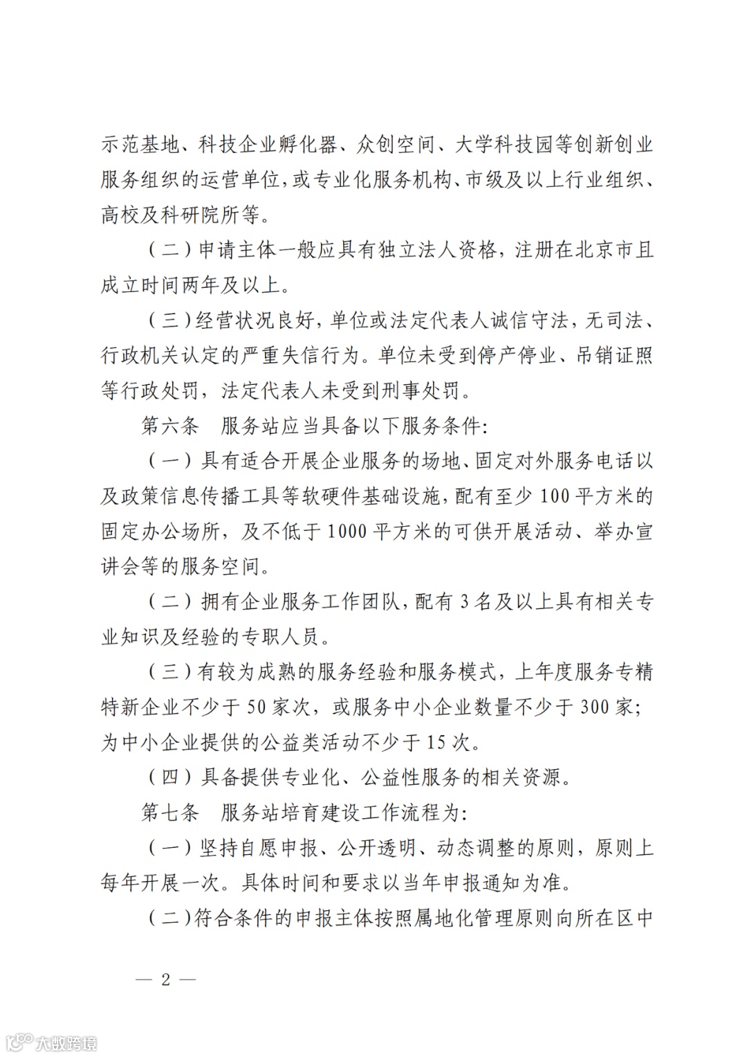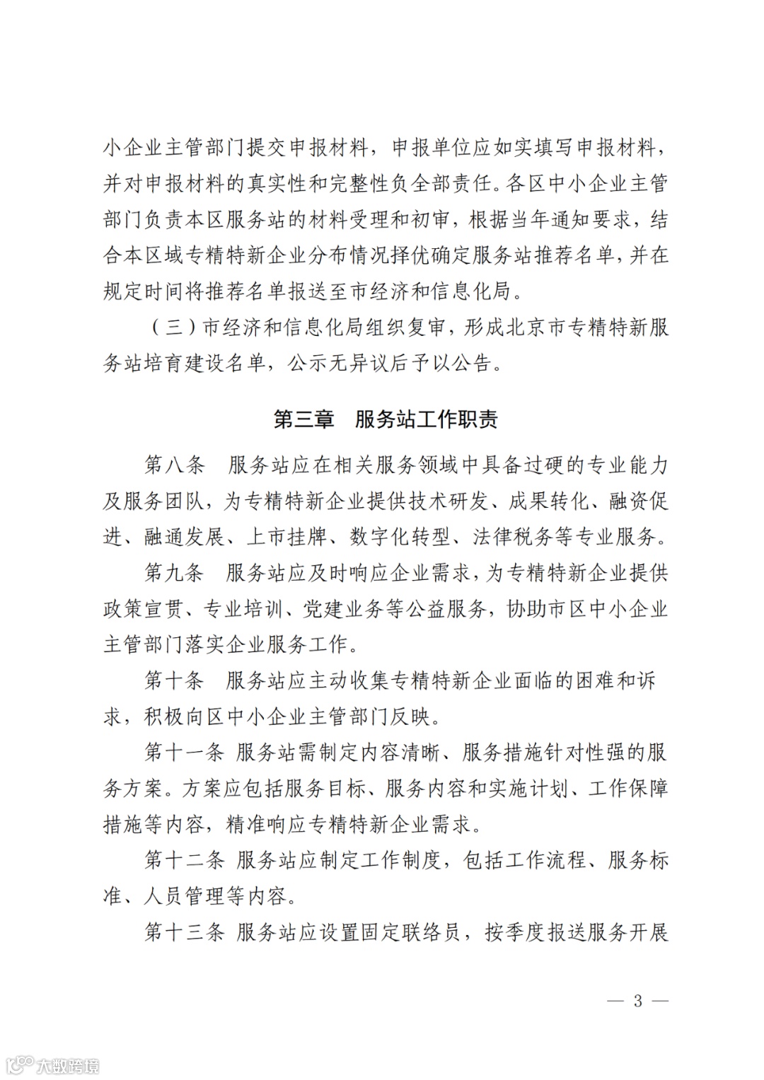 北京市经济和信息化局关于印发《北京市专精特新企业服务站建设管理办法》的通知