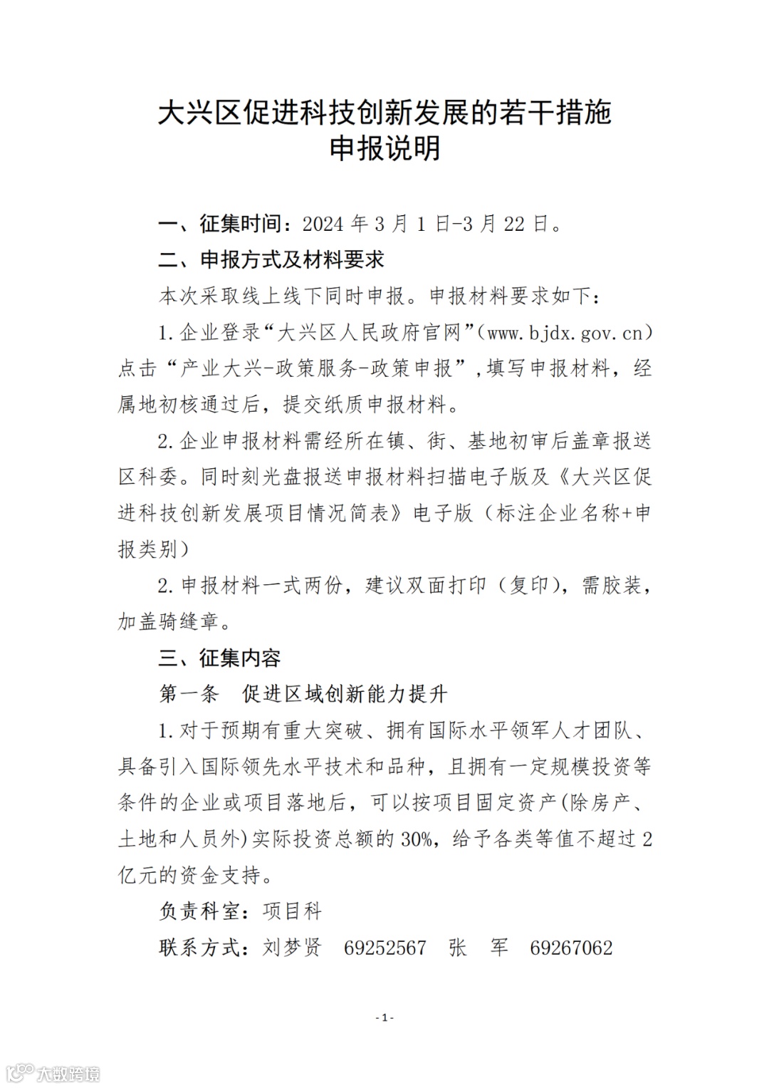 北京市大兴区科学技术委员会关于征集2023年度大兴区促进科技创新发展项目的通知