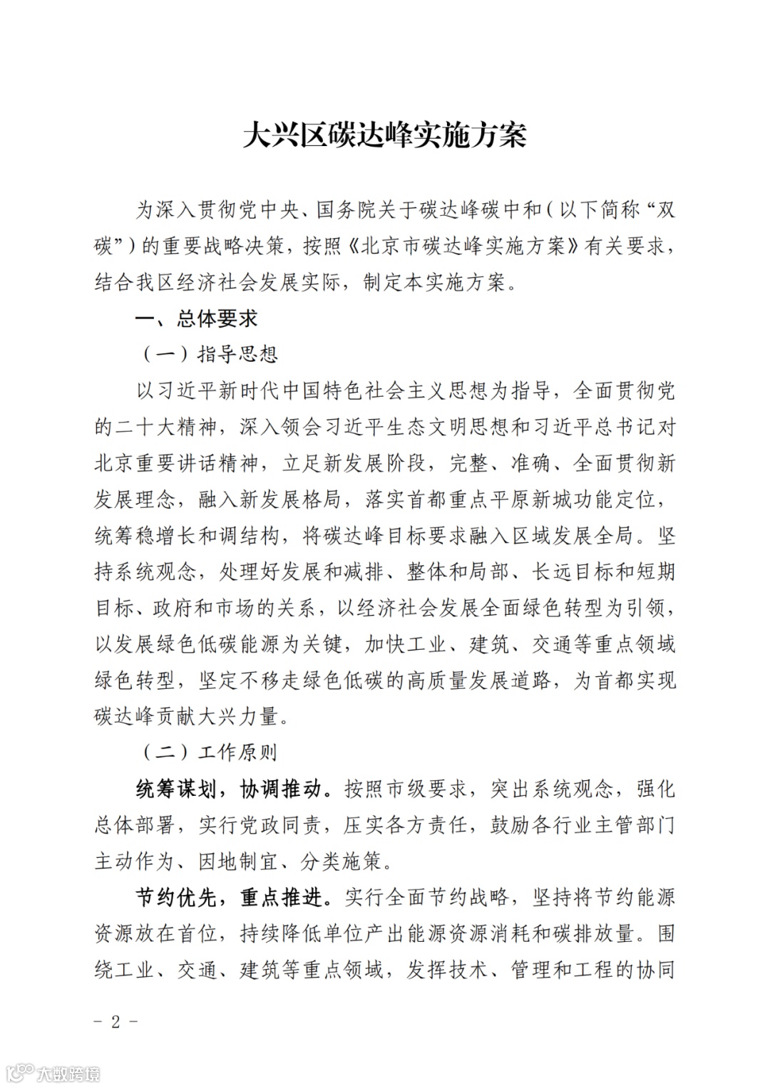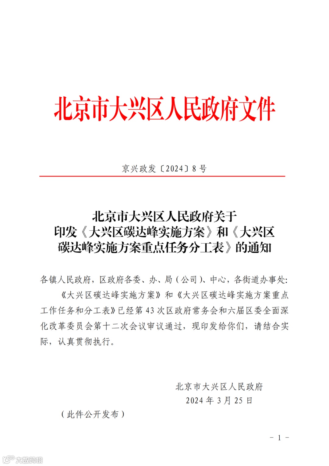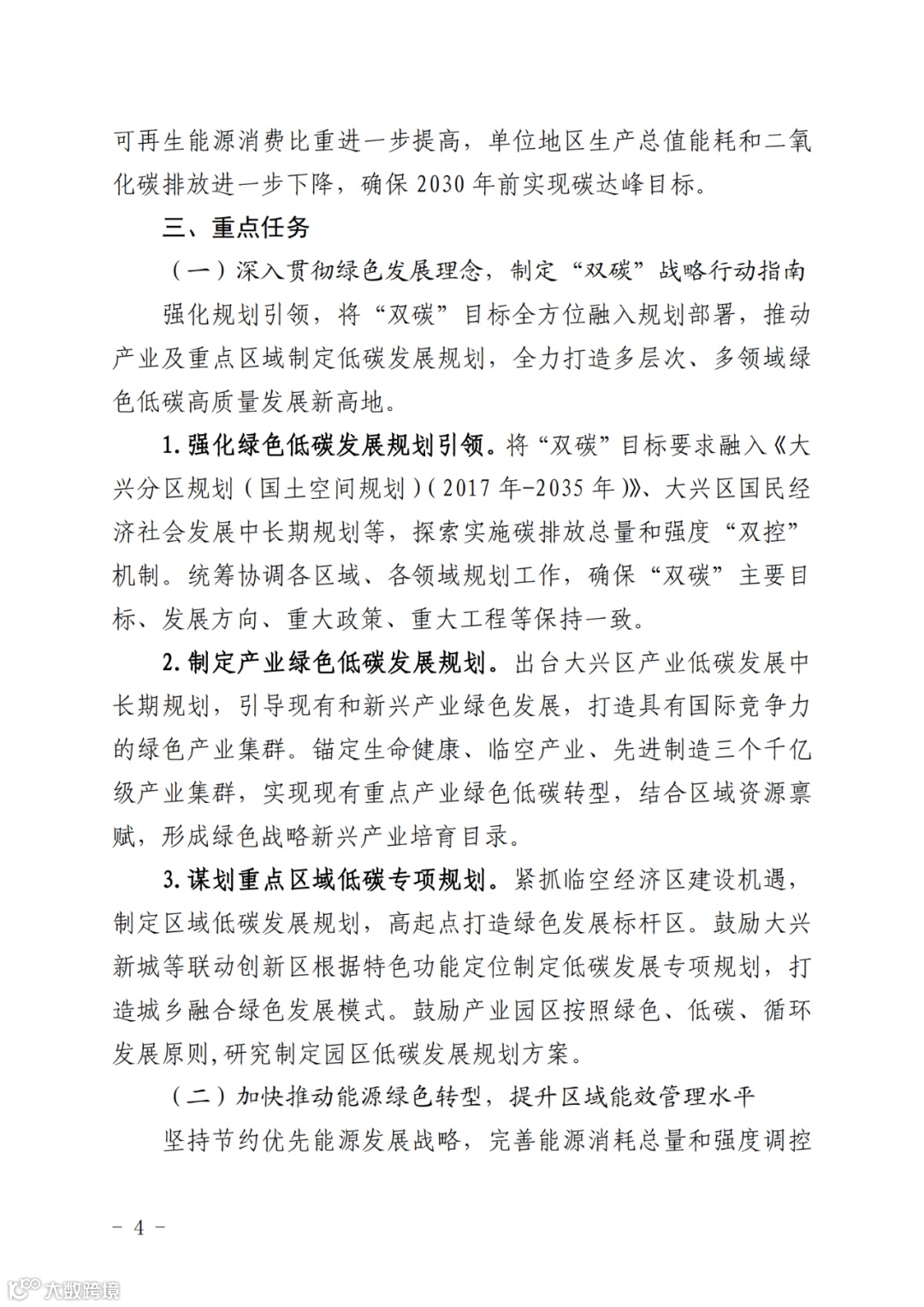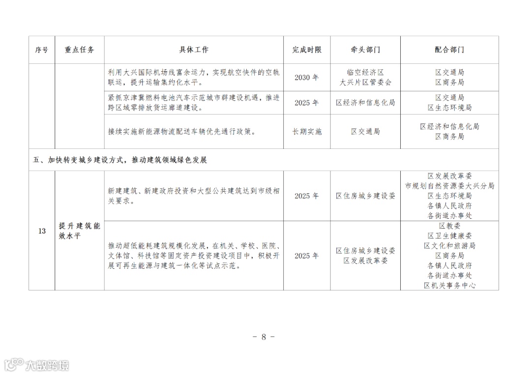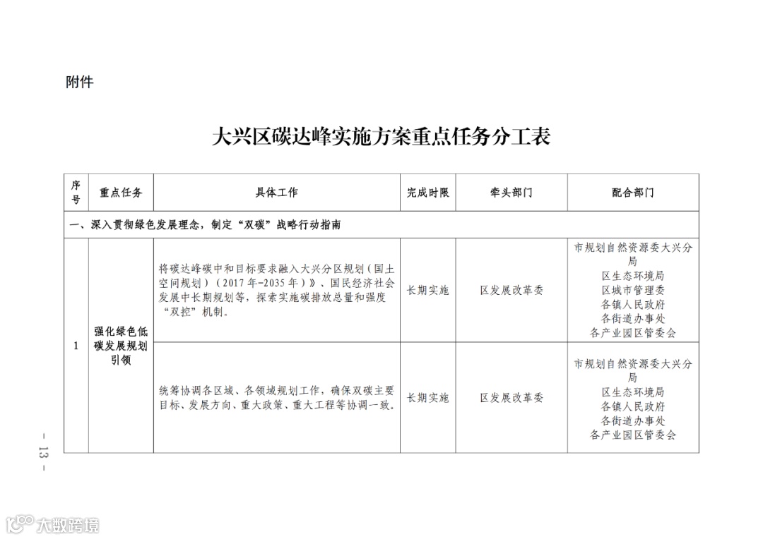 北京市大兴区人民政府关于印发《大兴区碳达峰实施方案》和《大兴区碳达峰实施方案重点任务分工表》的通知