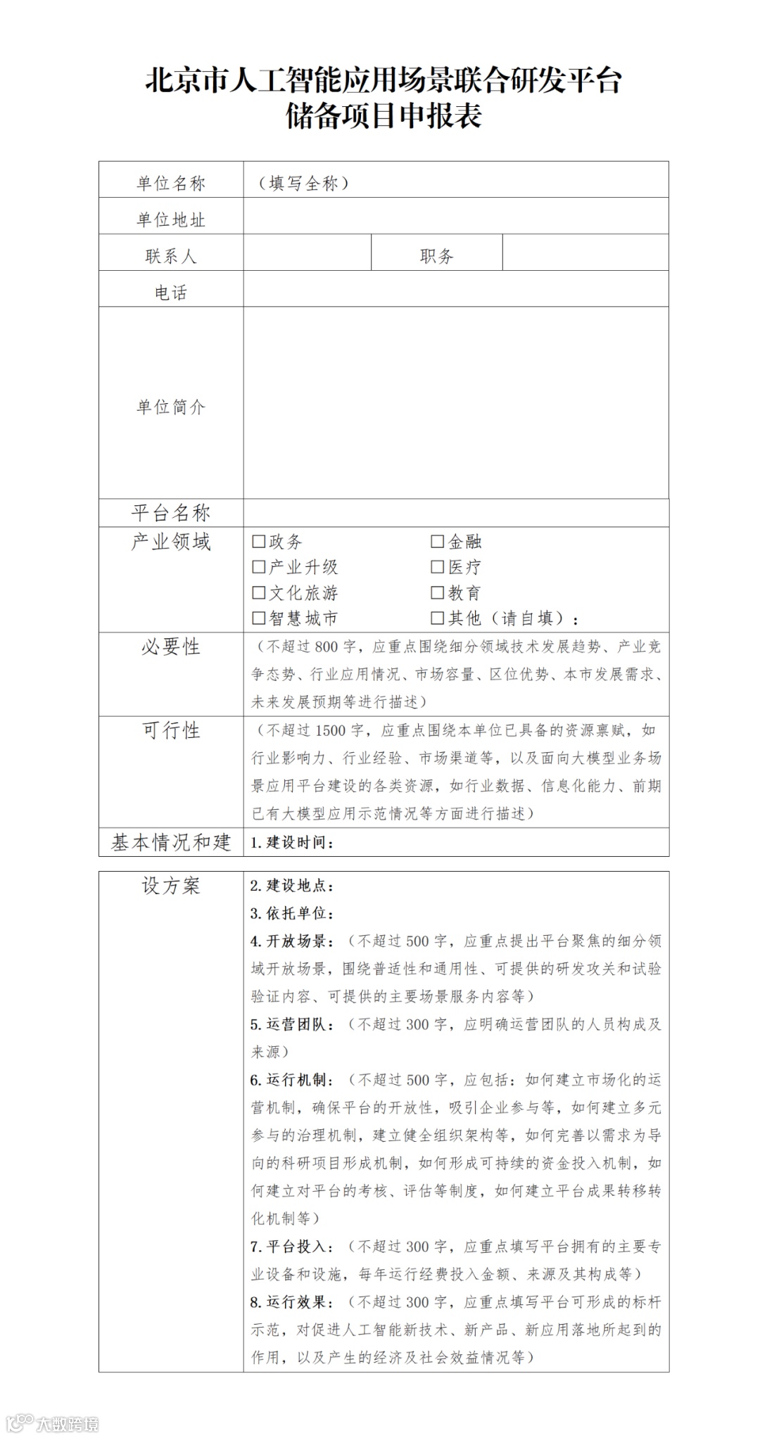 附件:北京市人工智能应用场景联合创新研发平台申报表