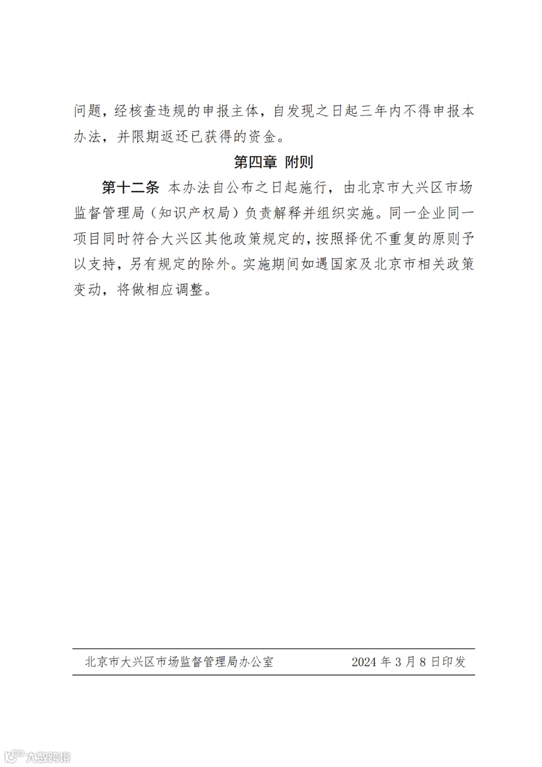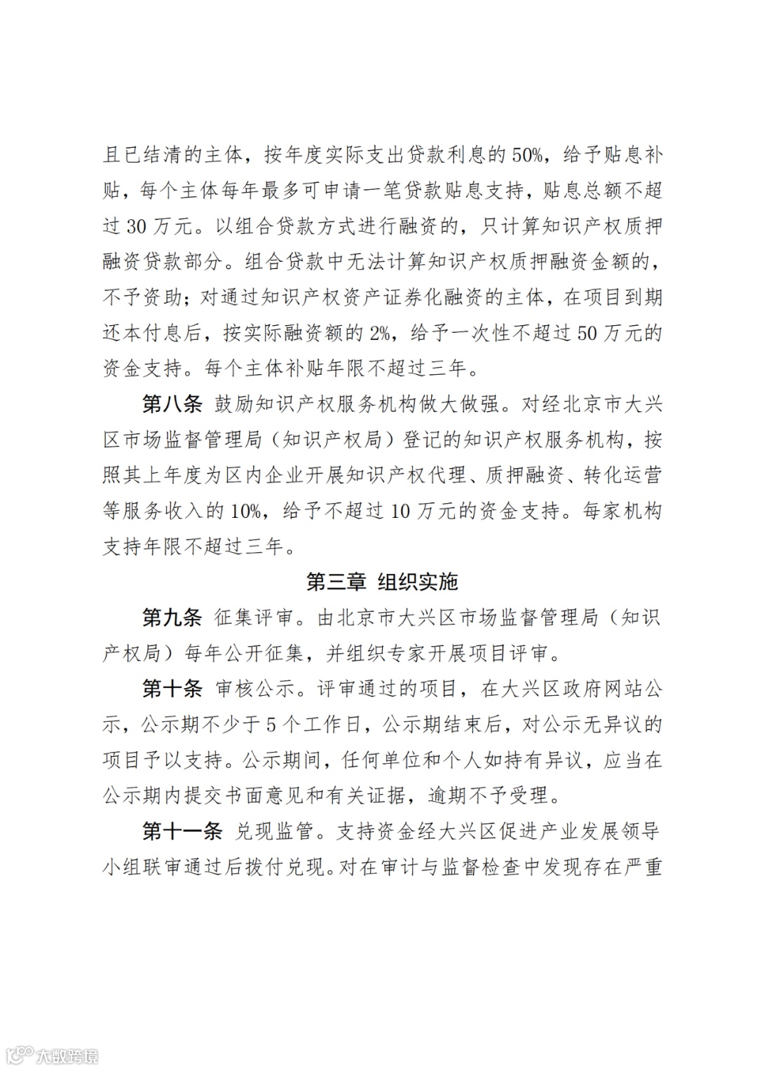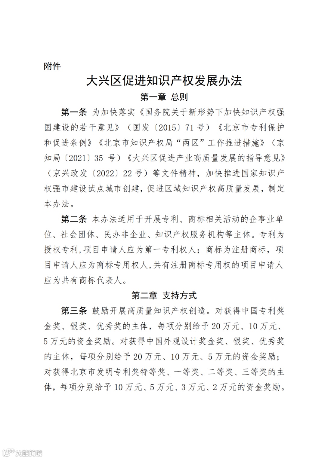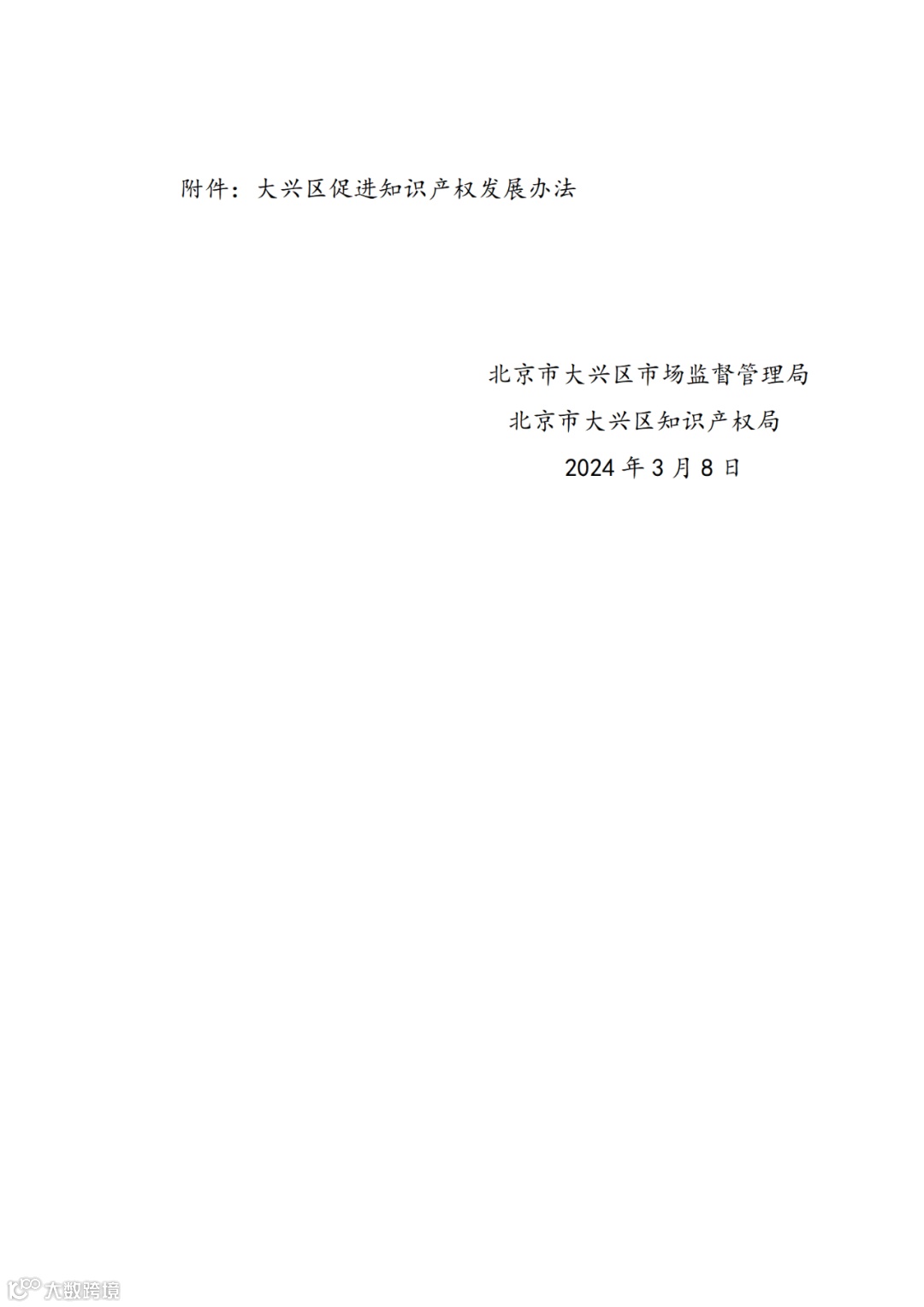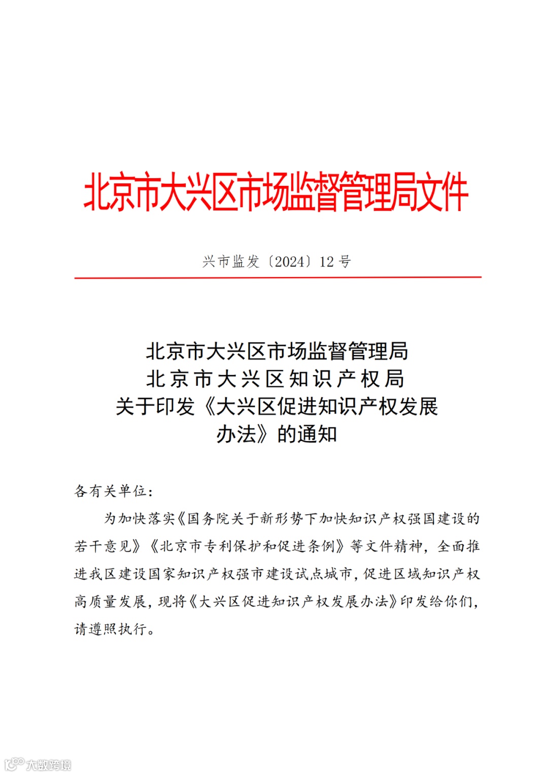 北京市大兴区市场监督管理局 北京市大兴区知识产权局关于印发《大兴区促进知识产权发展办法》的通知