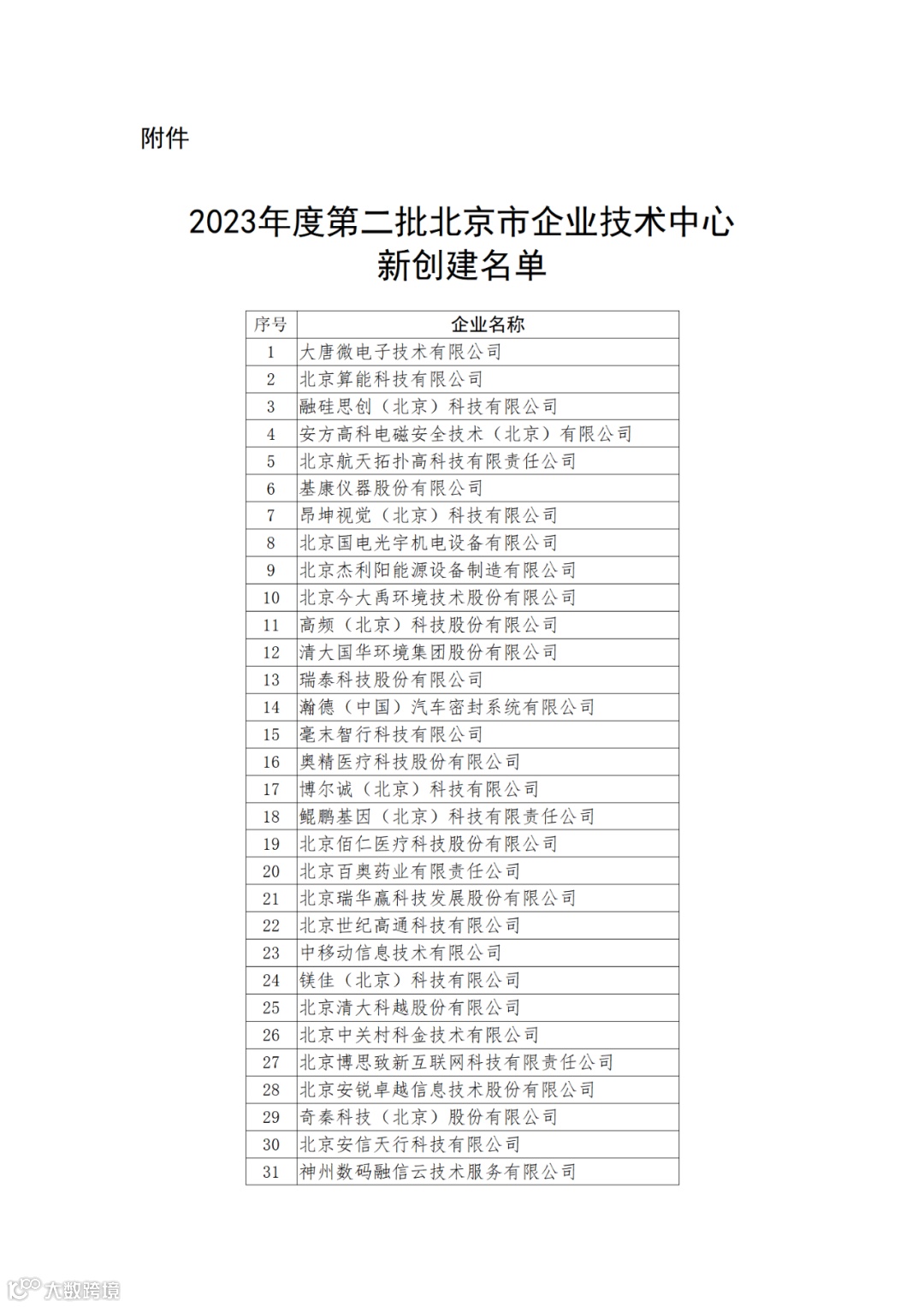 关于公布2023年度第二批北京市市级企业技术中心新创建名单的通知