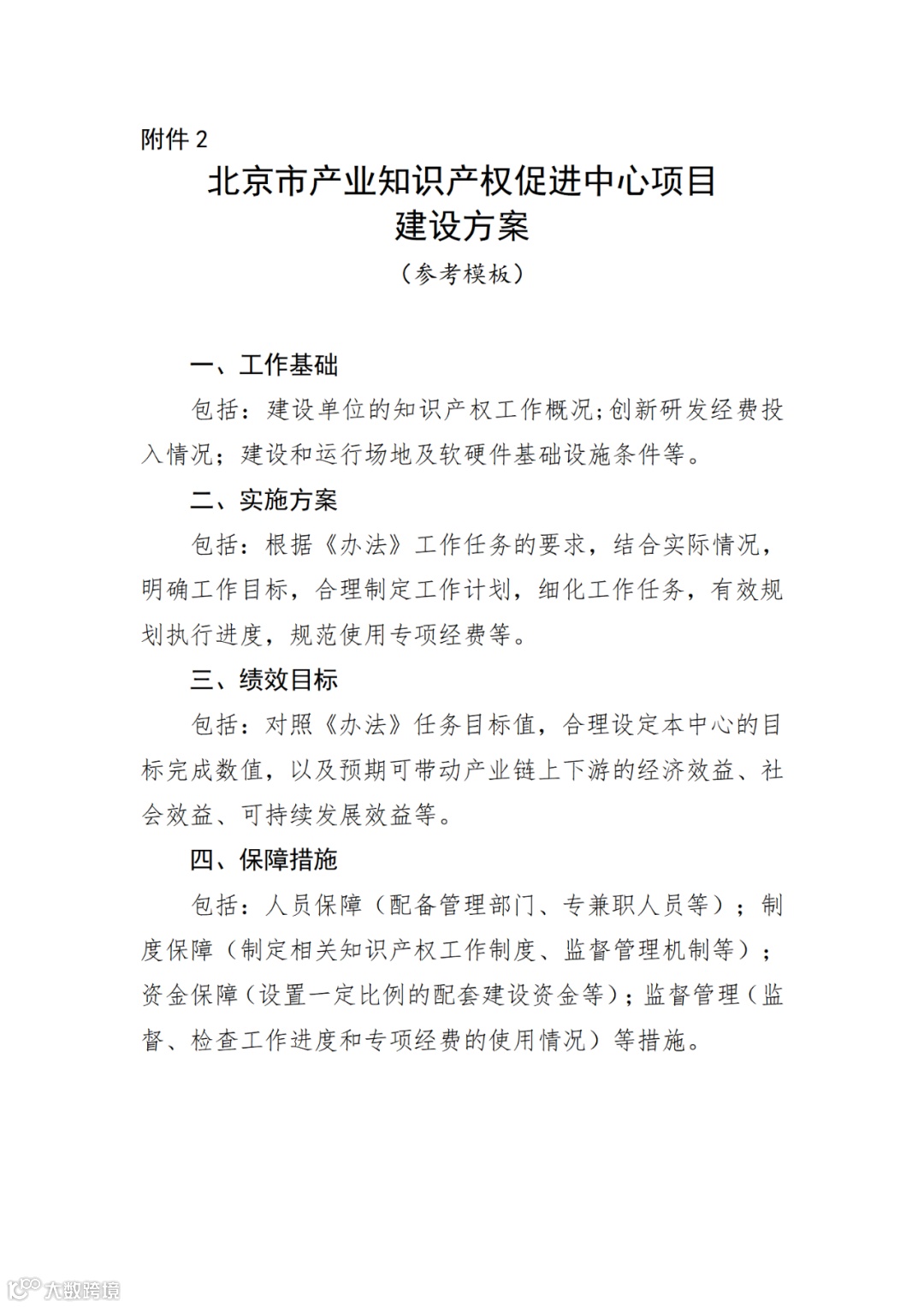 2.《北京市产业知识产权促进中心建设方案》(参考模板)
