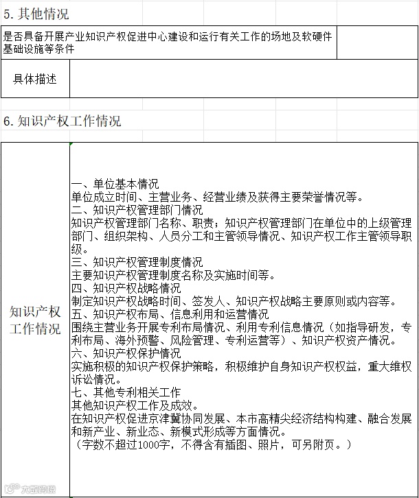 (六)具备开展产业知识产权促进中心建设和运行有关工作的场地及软硬件基础设施等条件。
