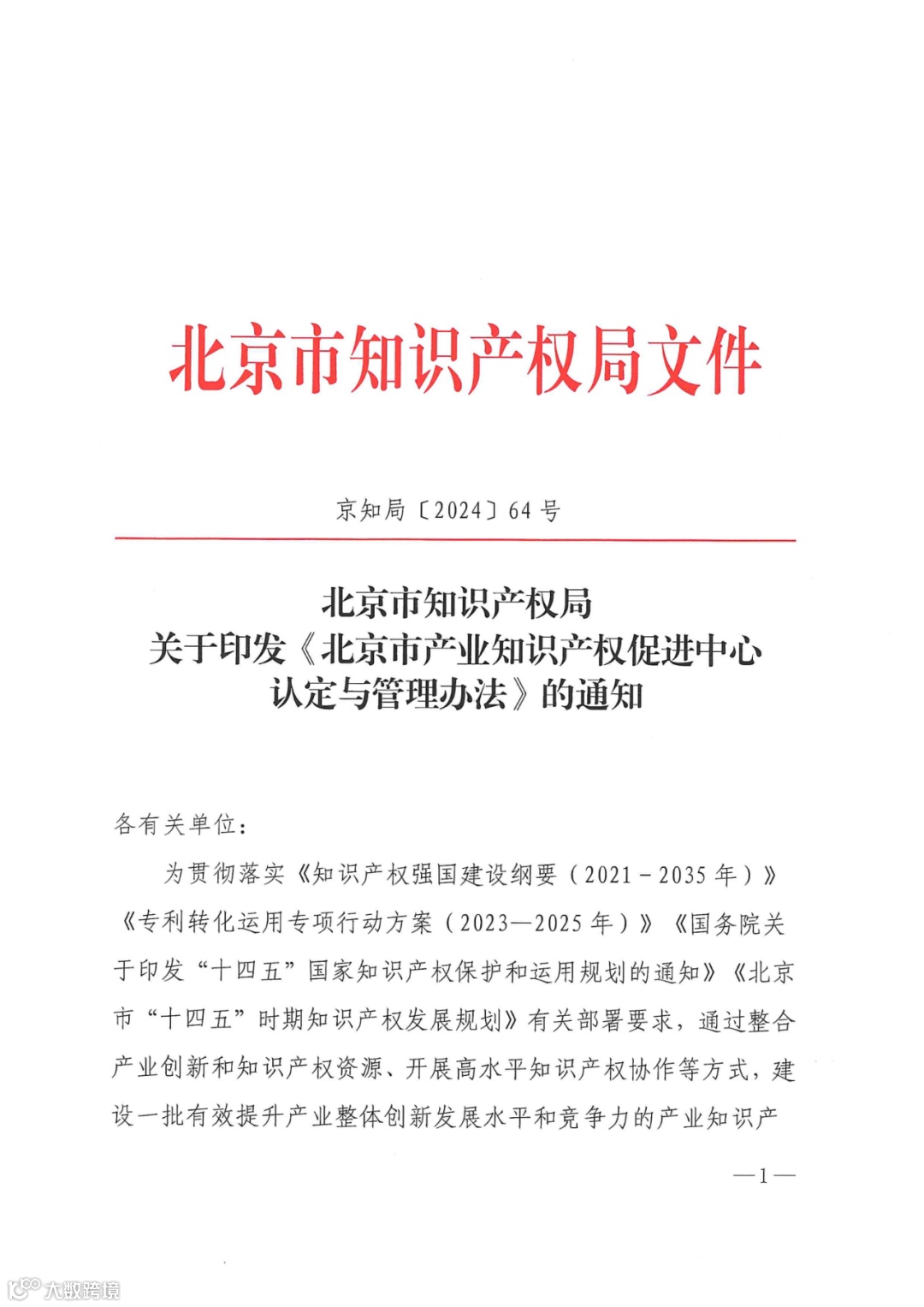 为深入贯彻落实《知识产权强国建设纲要(2021-2035年)》精神,推进知识产权转化运用,助力产业高质量发展,根据《北京市知识产权局关于印发<北京市产业知识产权促进中心认定与管理办法>的通知(京知局〔2024〕64号)》要求,北京市知识产权局现组织开展北京市产业知识产权促进中心建设项目的申报工作。有关事项通知如下: