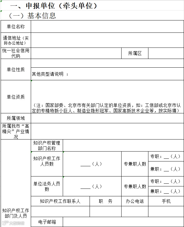 1.《北京市产业知识产权促进中心申请表》(2024年样表)