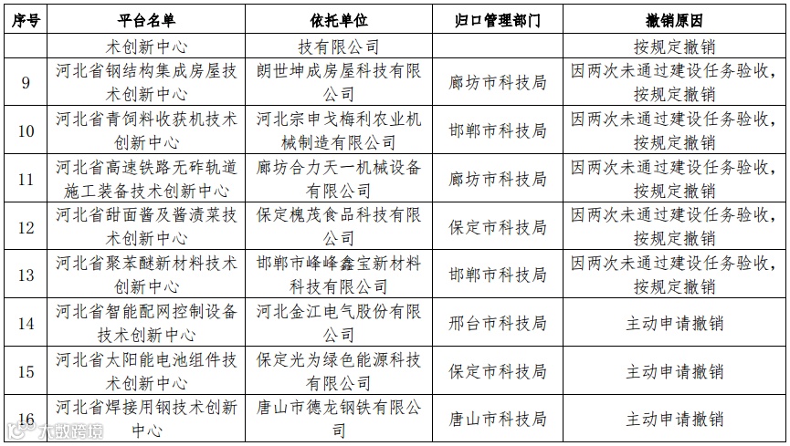 日前,河北省科学技术厅发布通知撤销 24 家省级重点实验室、技术创新中心。