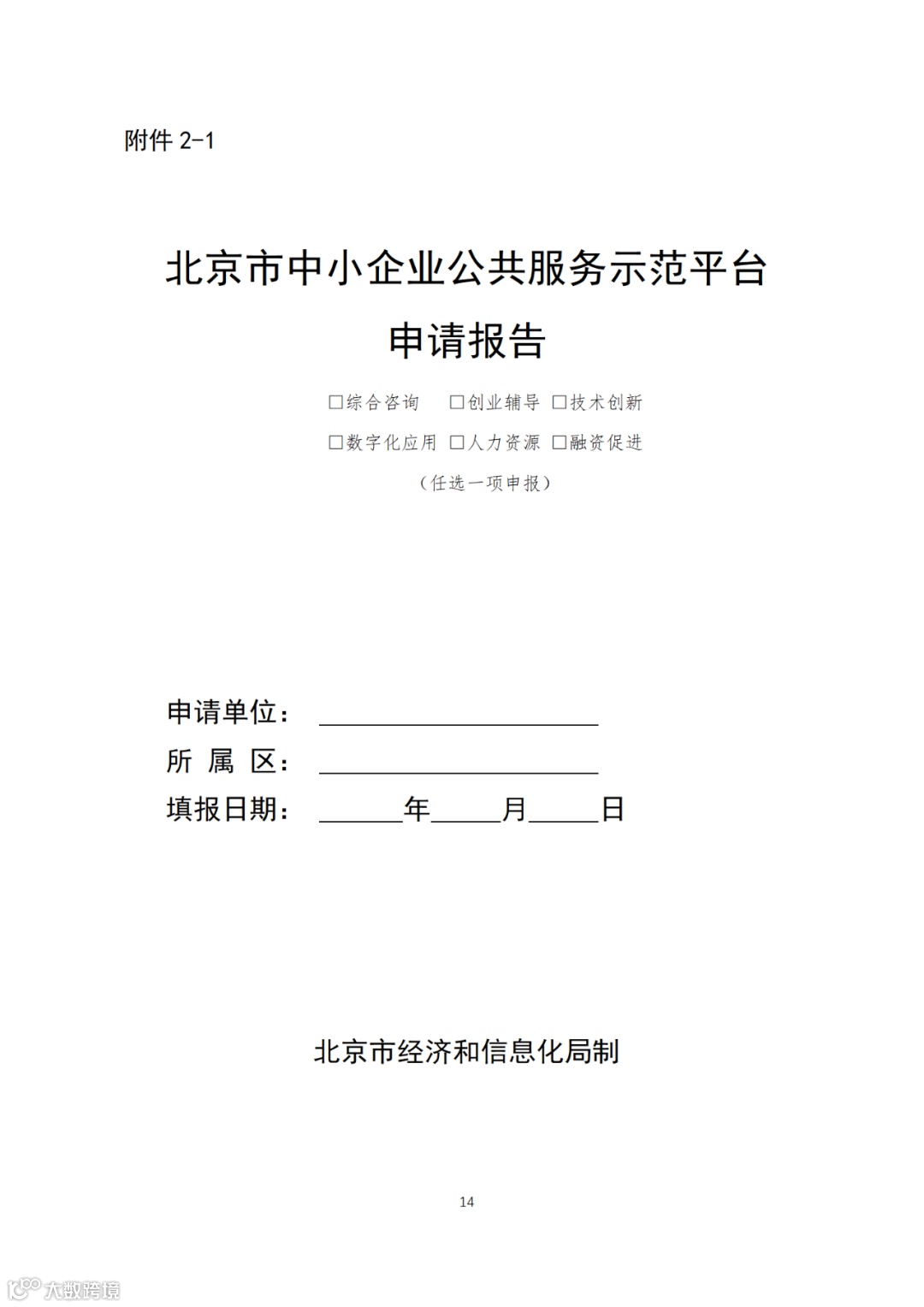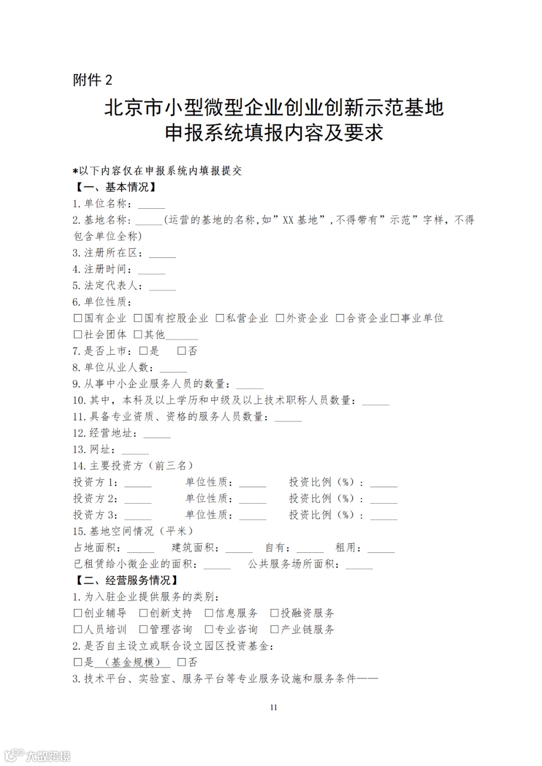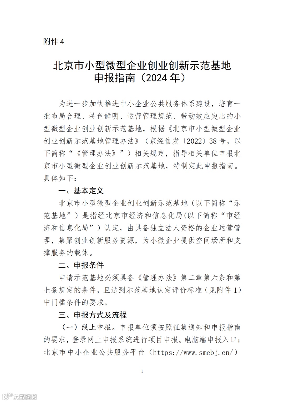 关于开展2024年度北京市中小企业公共服务示范平台、小型微型企业创业创新示范基地申报工作的通知