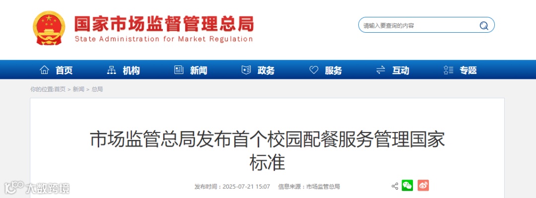 近日,市场监管总局批准发布《校园配餐服务企业管理指南》国家标准,持续完善校园食品安全监管体系。