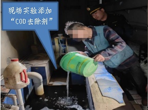 2023年3月29日下午,执法人员对该单位进行现场突击检查。现场检查发现,该单位总排口COD自动监控数据上升至100mg/L左右,与平时的数据反差极大。执法人员通过全面排查该单位的自动监控设施,未发现设施有异常情况,在排除采样环节稀释样品、分析环节修改参数等常见的造假可能后,执法人员现场对该单位使用的药剂进行逐一排查,发现部分药剂未标明成分,十分可疑。经进一步调查,该单位操作人员最终承认,平时为防止COD自动监控数据超标,在总排口处添加了“COD去除剂”,执法人员现场检查时未敢添加,导致自动监控数据反弹至真实水平。该操作人员随后现场演示了添加药剂的过程,在此期间COD自动监控数值由101mg/L降为9.3mg/L。经专业机构鉴定,该药剂为浓度超过99%的氯酸钠,生态环境部门将此案件信息通报公安机关后,公安机关立即对“COD去除剂”销售链上下游开展追查,已锁定上游卖家2家。