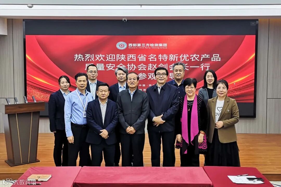 4月11日,陕西省名特新优农产品质量安全协会会长赵剑一行,来西部第三方检测集团有限公司总部大楼实地参观考察,并就合作事项进行了座谈交流。西部第三方检测集团党委书记邵烨、总经理杨鸿泽等公司领导热情接待了赵剑会长一行。