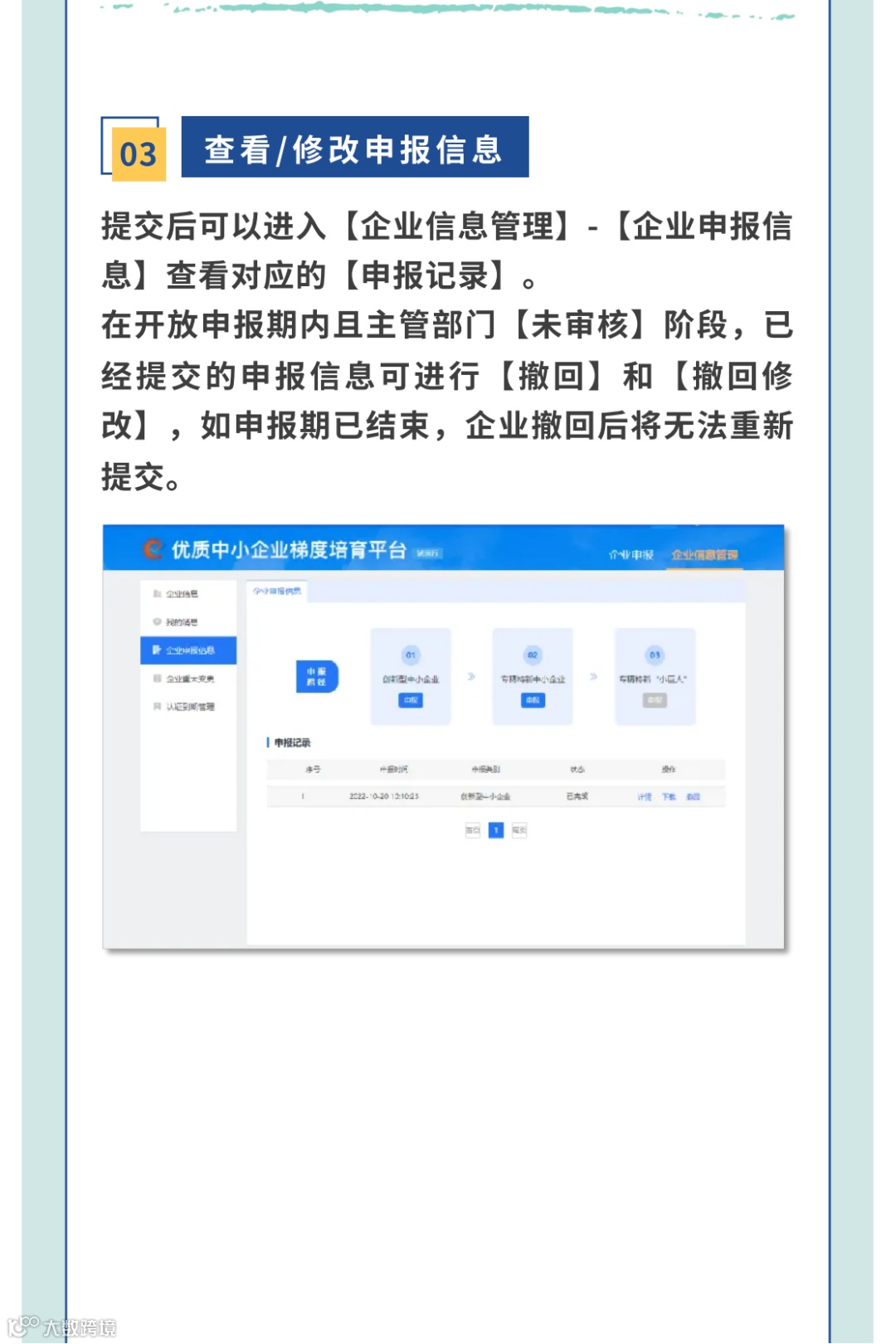 4.提交信息更新后如需修改,可进行“撤回”操作。(企业端平台操作手册详见附件)