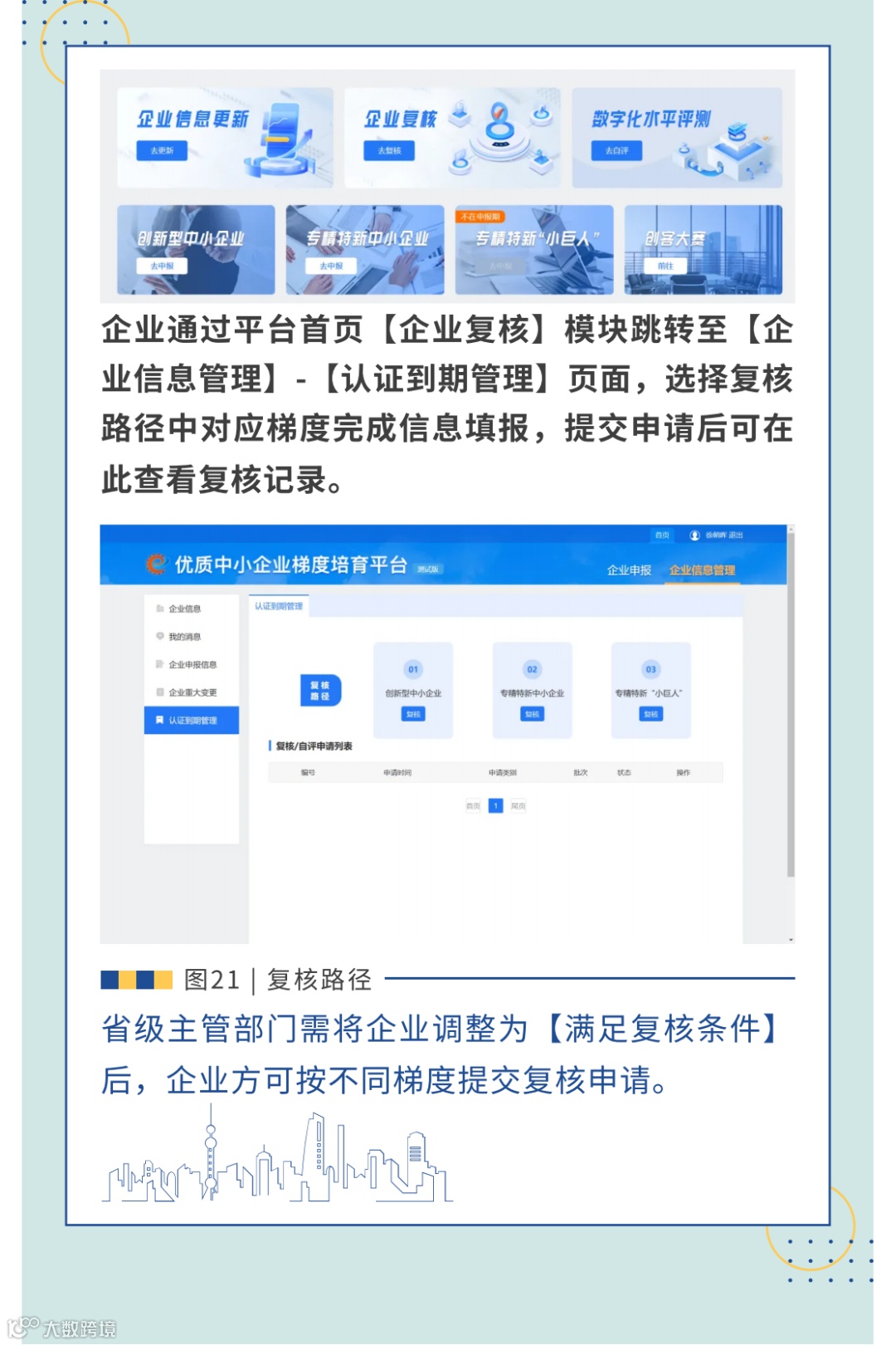 1.有效期内的北京市创新型中小企业、北京市专精特新中小企业和国家专精特新“小巨人”企业,在规定时间内通过培育平台完成年度信息更新的,企业资质称号继续有效;未按规定完成年度信息更新的,取消其复核资格,连续两年及以上均未完成年度信息更新的,取消该企业所有资质。