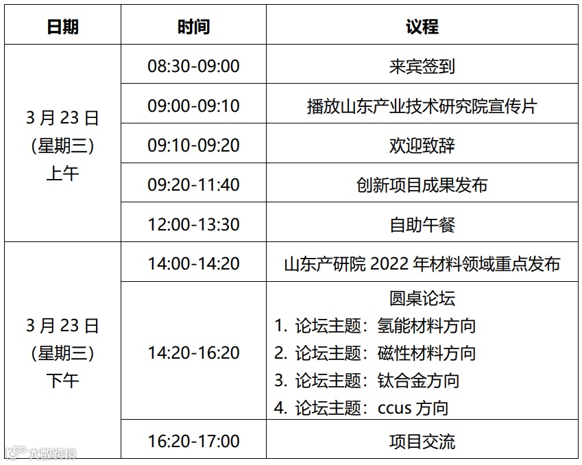 ,届时将有10个创新项目进行展示,同时将发布山东产研院2022年材料领域重点工作,邀约新材料产业方、投资机构、科研院所、政府部门等相关机构参与。