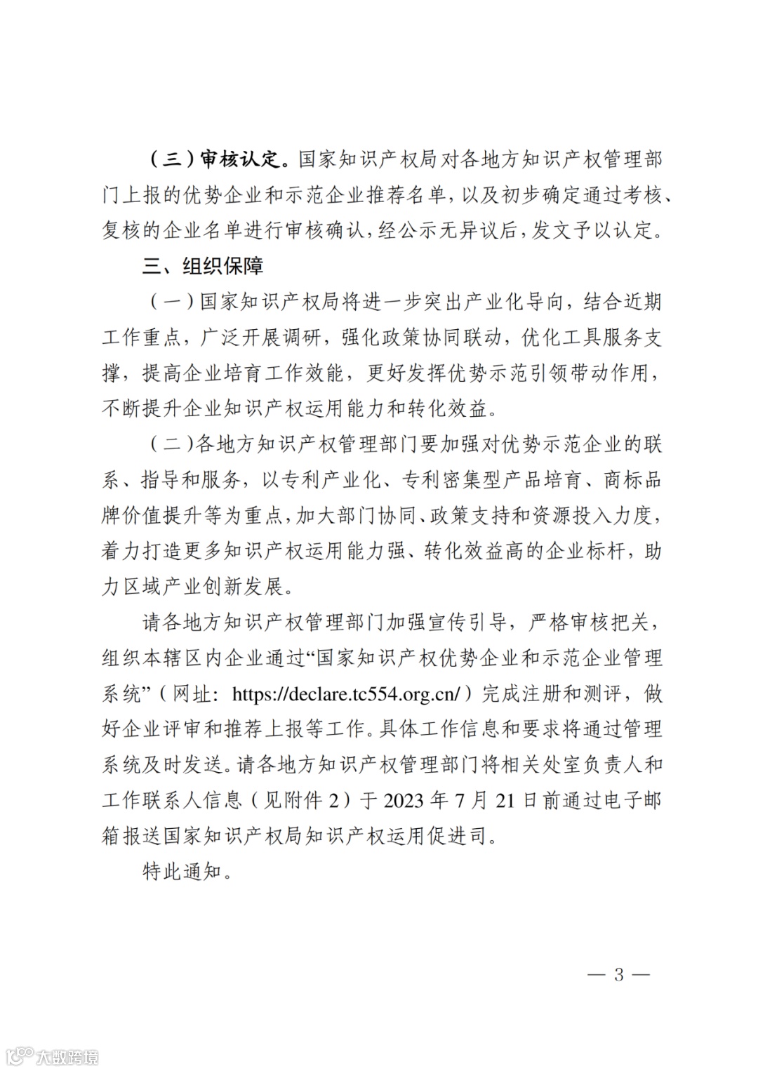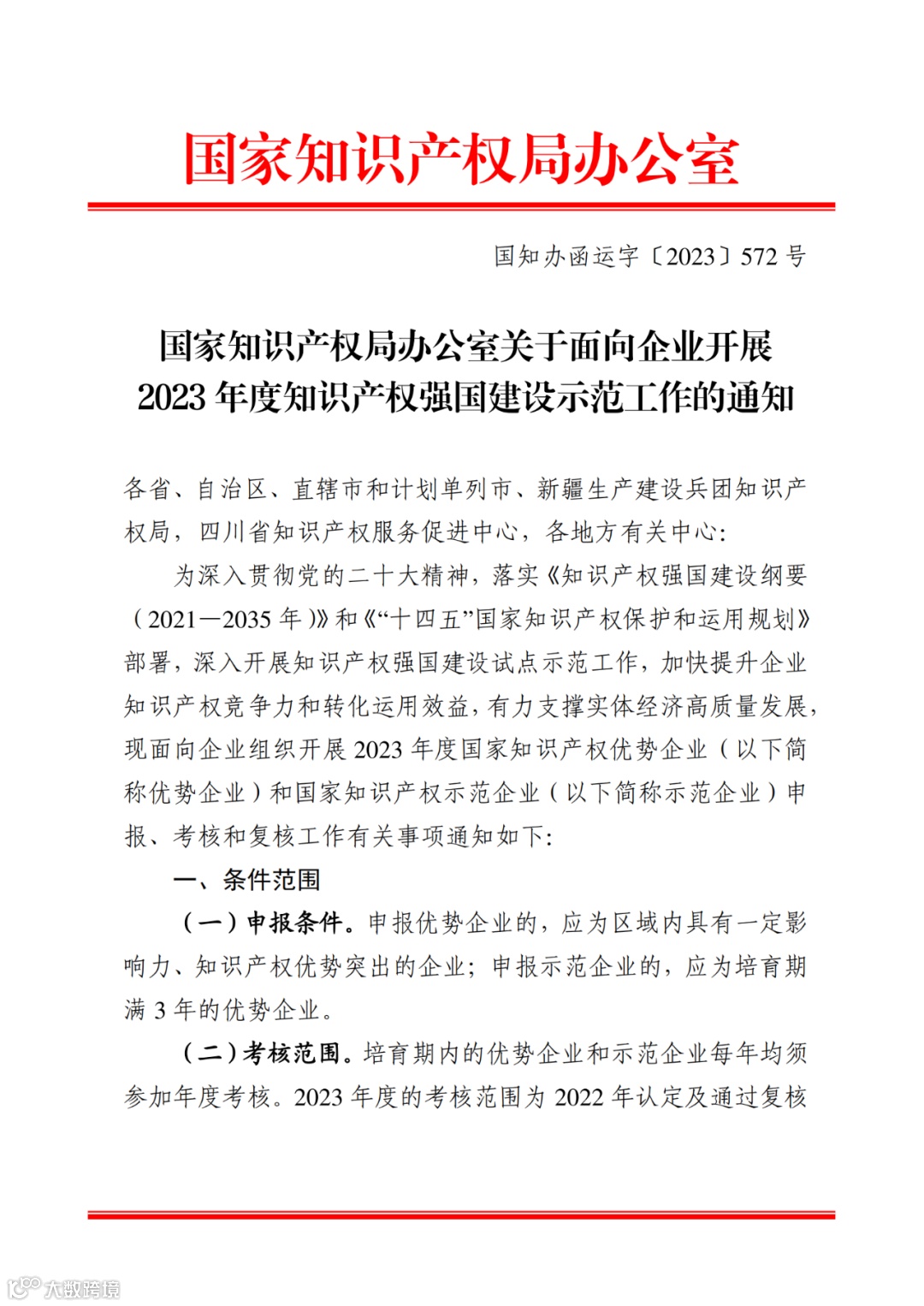 北京市知识产权局关于面向企业组织开展2023年度知识产权强国建设示范工作暨国家知识产权优势示范企业有关工作的通知