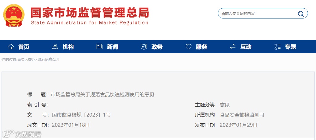 近日,市场监管总局发布《关于规范食品快速检测使用的意见》,《意见》提出,稳妥推进食品快检产品符合性评价和认证,完善食品快检用仪器设备、试剂等相关标准,鼓励开展食品快检产品认证,加强食品快检方法研制,鼓励市场监管部门采购通过符合性评价或获得认证的食品快检产品。全文如下: