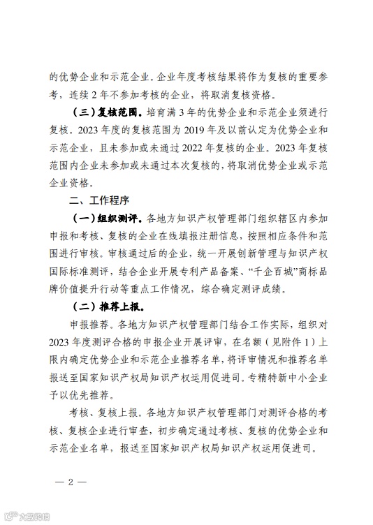 2.连续2年不参加考核的企业,将取消复核资格;2023年复核范围内企业未参加或未通过本次复核的,将取消优势企业或示范企业资格。