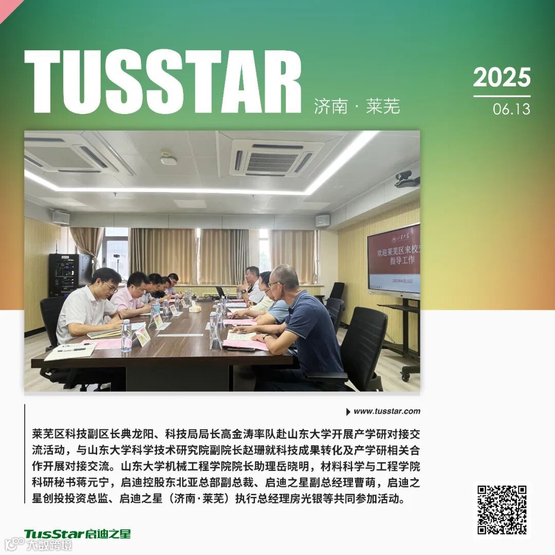政企校协同,深化产学研合作交流。为进一步拓宽产学研合作渠道,启迪之星(济南·莱芜)积极组织政企校三方交流活动。2025年上半年,陪同莱芜区科技副区长典龙阳、科技局局长高金涛一行赴山东大学开展产学研对接交流,与山东大学科学技术研究院副院长赵珊就科技成果转化及产学研相关合作进行深入探讨,为后续合作奠定良好基础。