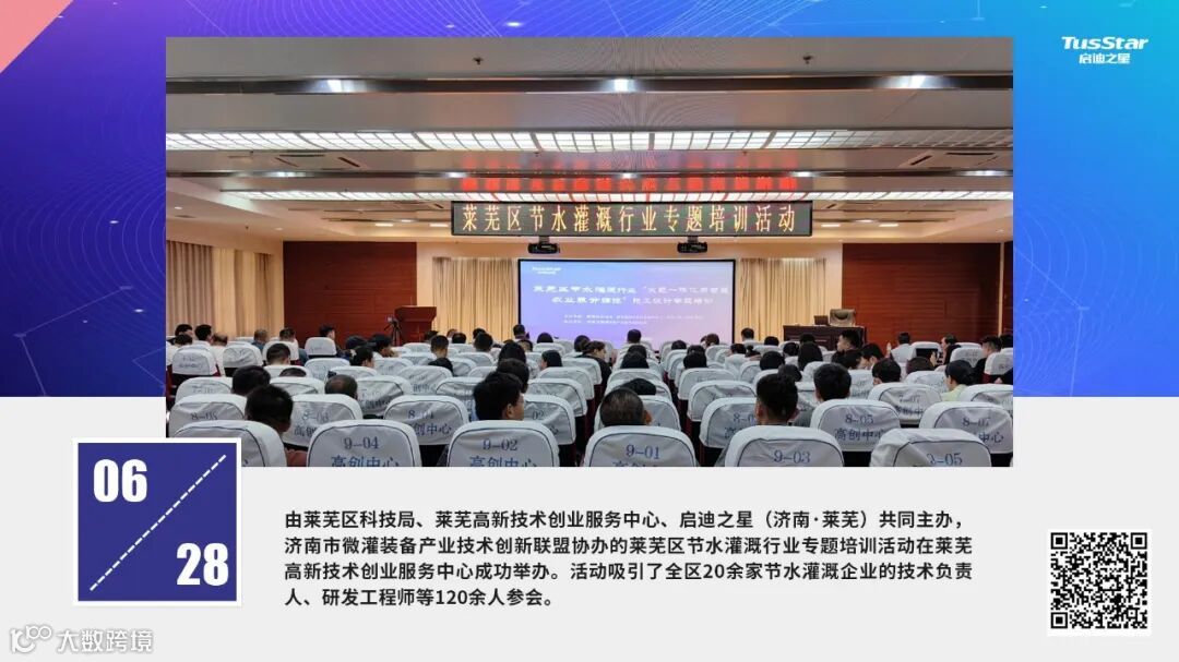 节水灌溉行业专题培训赋能智慧农业。举办莱芜区节水灌溉行业专题培训活动,吸引全区20余家节水灌溉企业的技术负责人、研发工程师等120余人参会。活动聚焦智能灌溉系统设计、养分调控灌溉技术前沿领域,通过专家授课与案例研讨结合的形式,为企业提供智慧农业实践创新方向及决策模型参考。