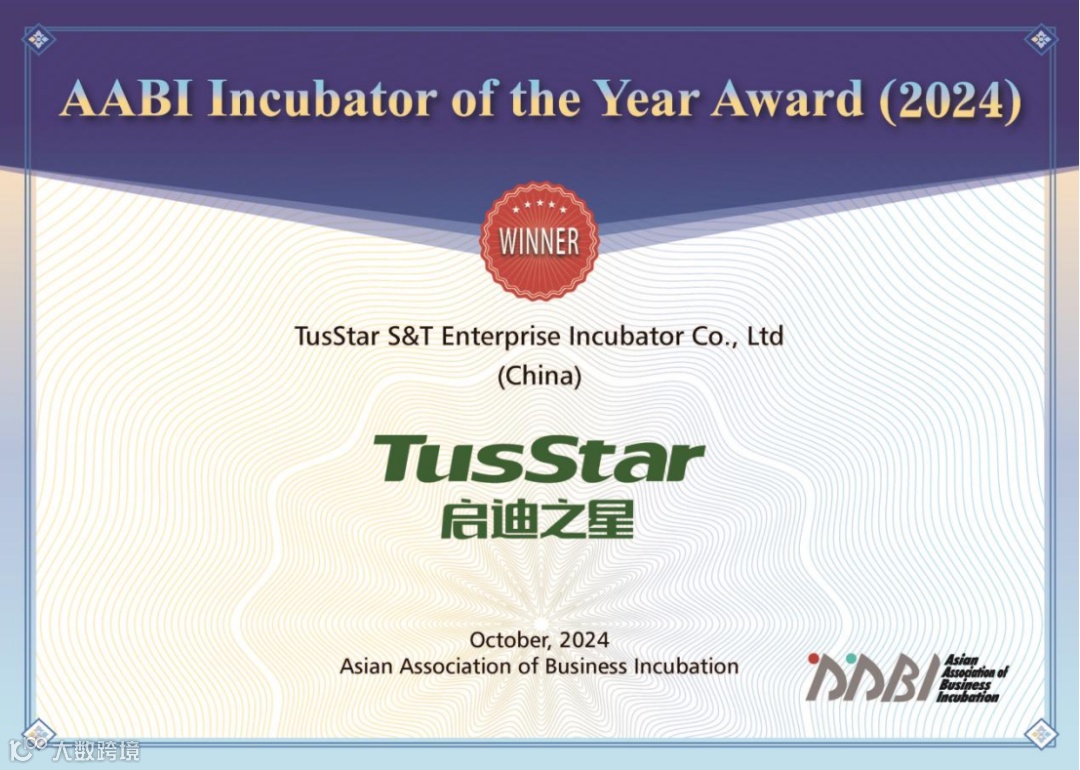 由AABI中国区理事推荐申报,启迪之星(上海)牵头申请,启迪之星荣获“AABI Incubator of the Year Award 2024” 2024年度AABI亚洲最佳孵化器大奖。
