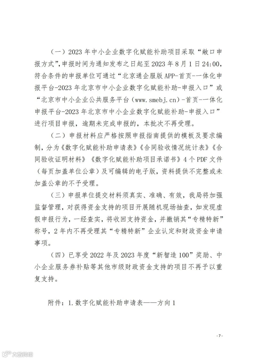 关于申报2023年北京市中小企业数字化赋能补助项目的通知