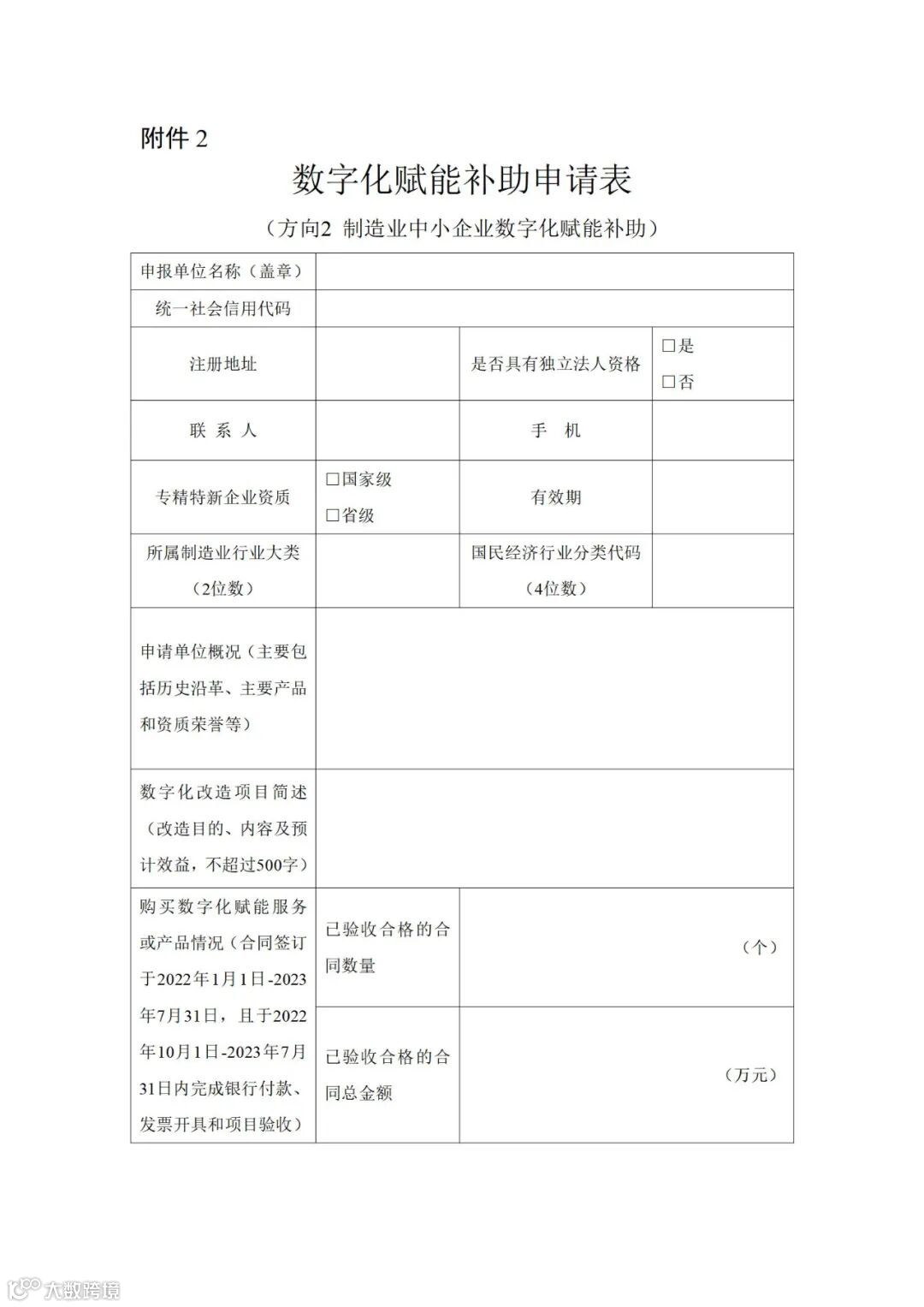 附件:2 .数字化赋能补助申请表——方向2