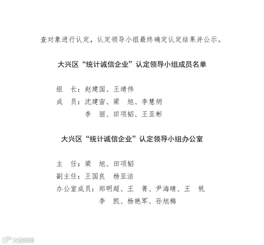 北京市大兴区统计局北京市大兴区经济社会调查队关于认定2023年度大兴区“统计诚信企业”的通知
